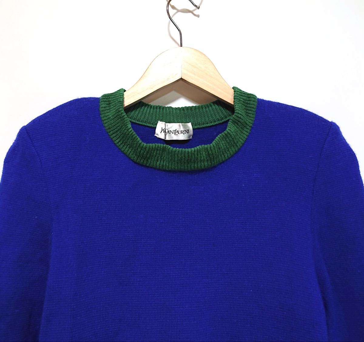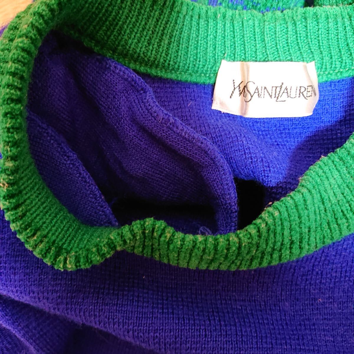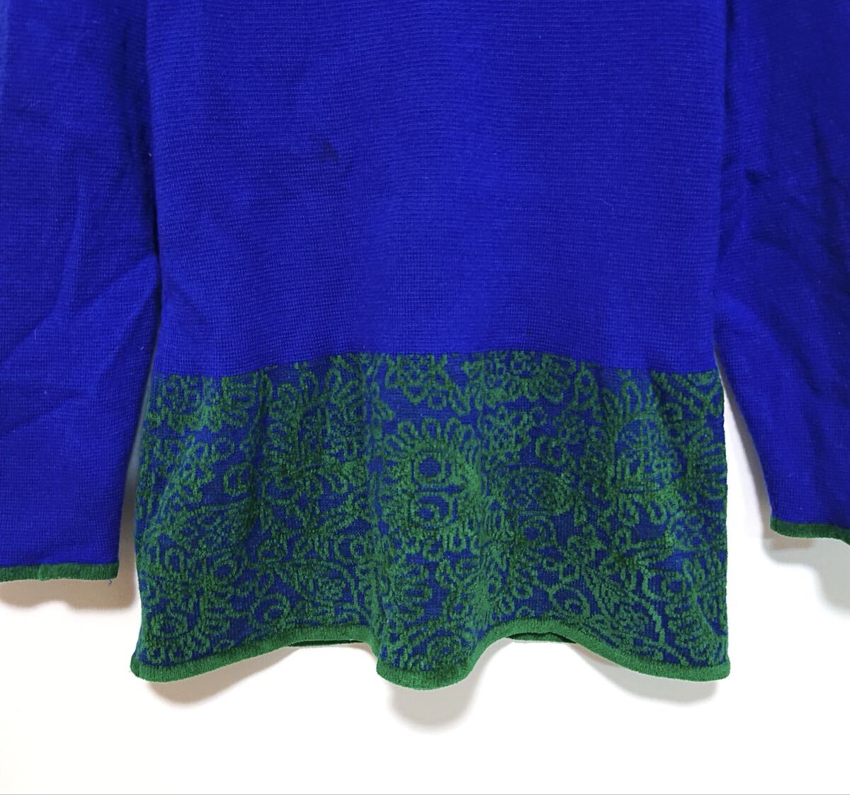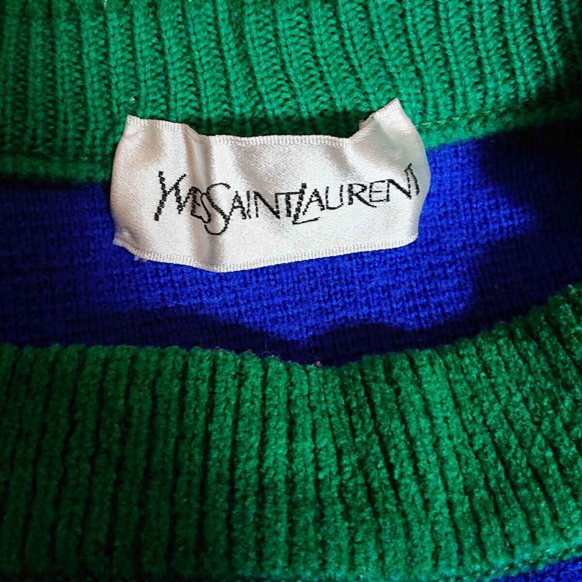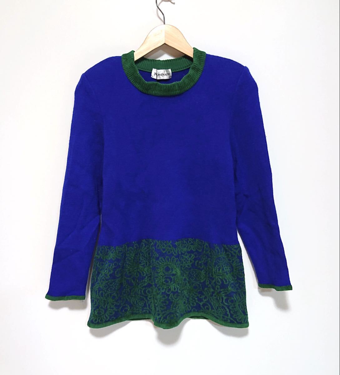 h4267gg YVES SAINT LAURENT(イヴサンローラン)サイズM ニット ブルー×グリーン レディース 秋冬トップス ウール混 肩パッド おしゃれ