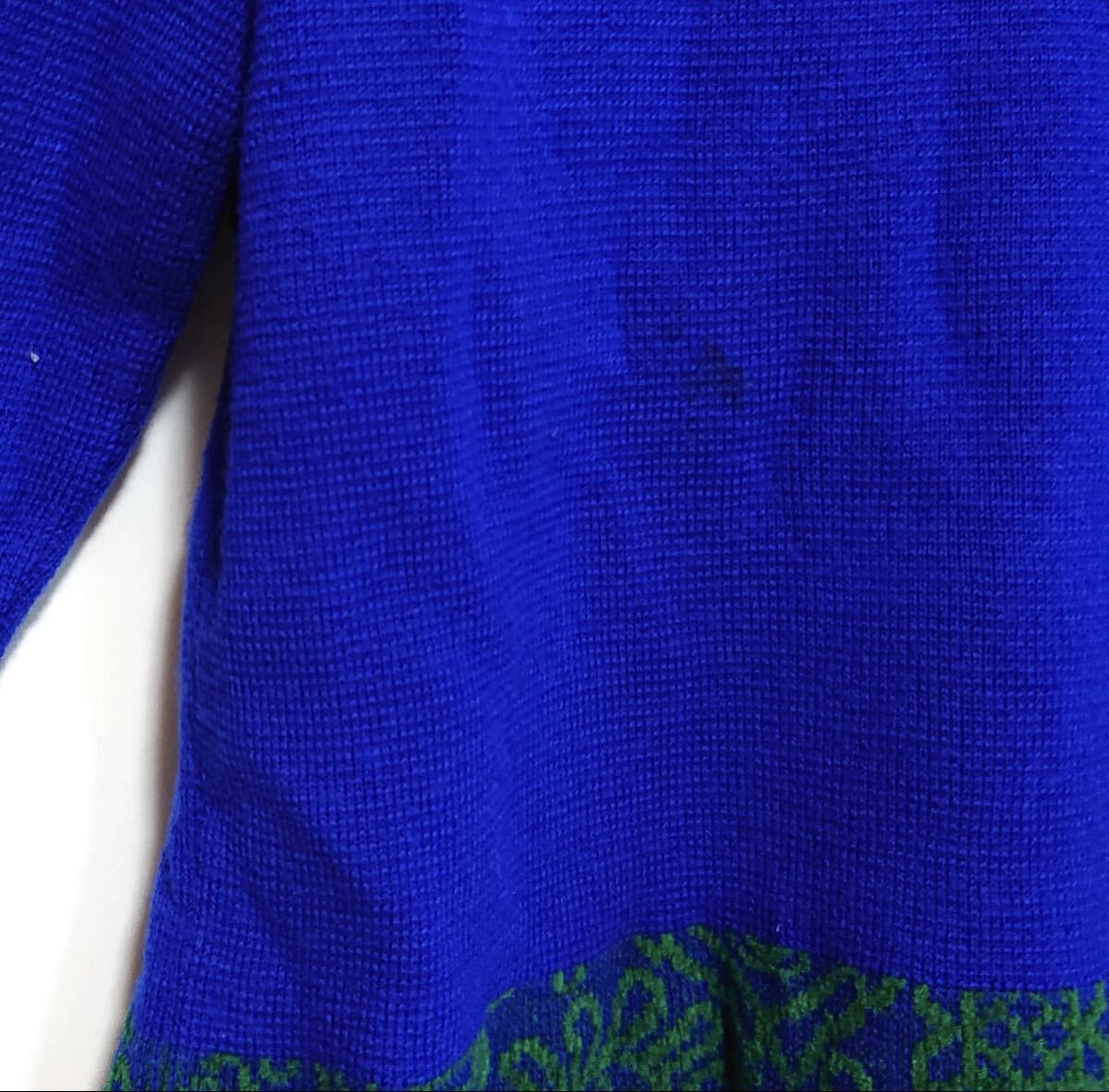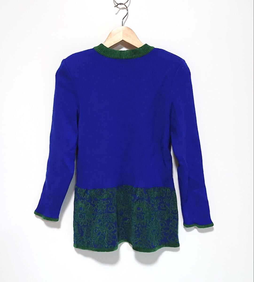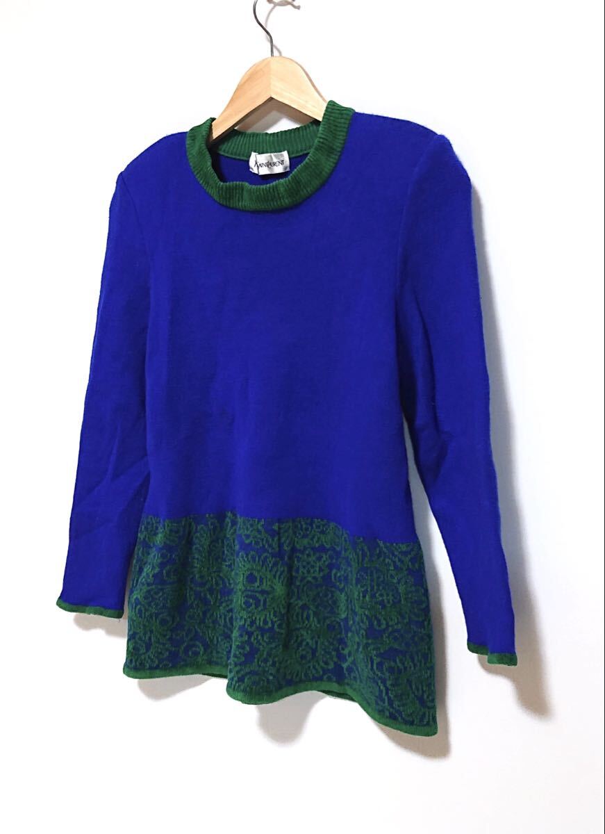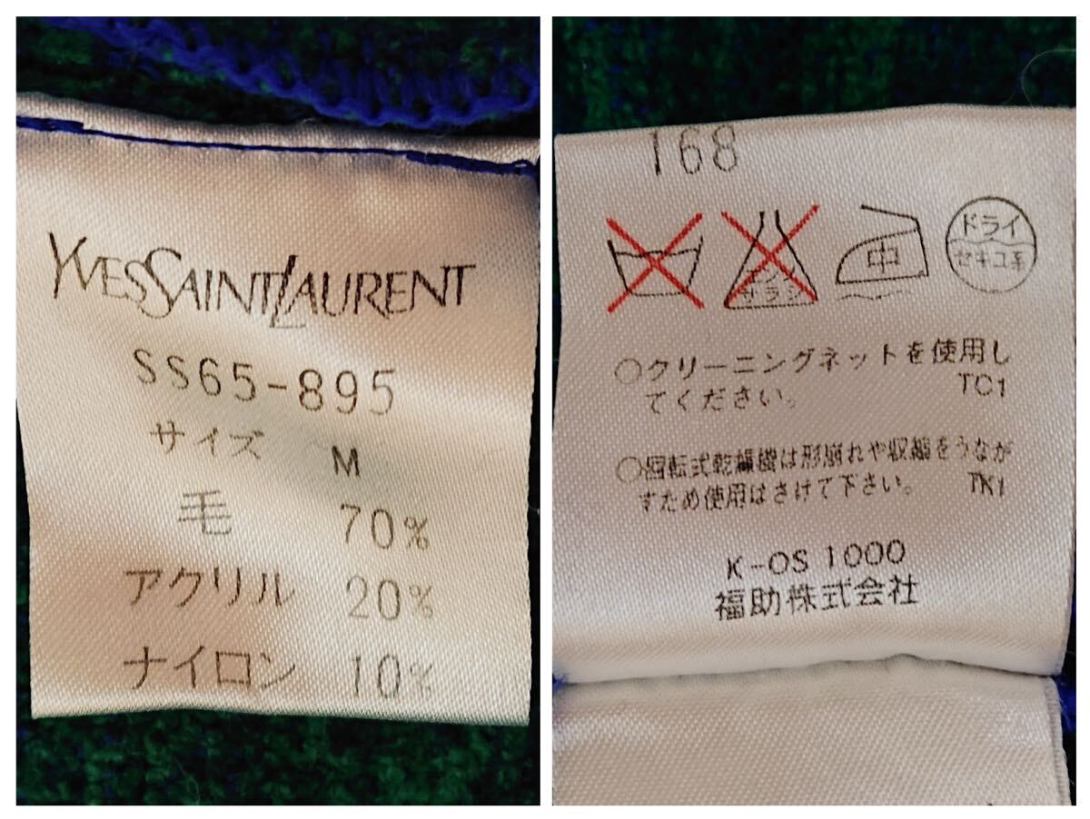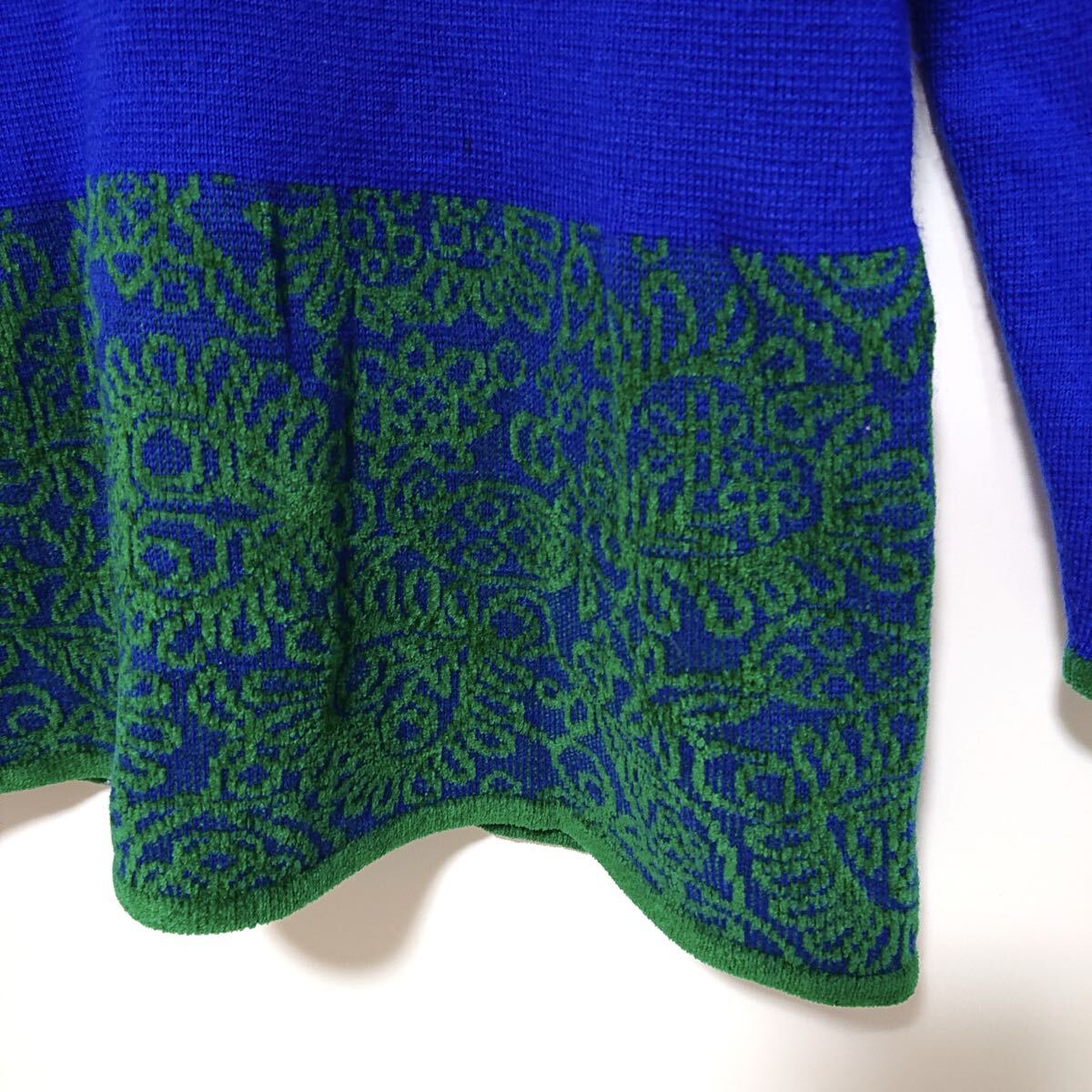h4267gg YVES SAINT LAURENT(イヴサンローラン)サイズM ニット ブルー×グリーン レディース 秋冬トップス ウール混 肩パッド おしゃれ