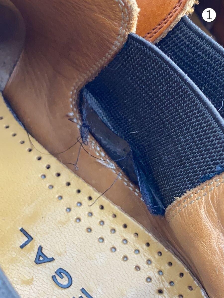 (1)内側ほつれあり (2)ほつれあり (3)履きジワあり クレープソール |