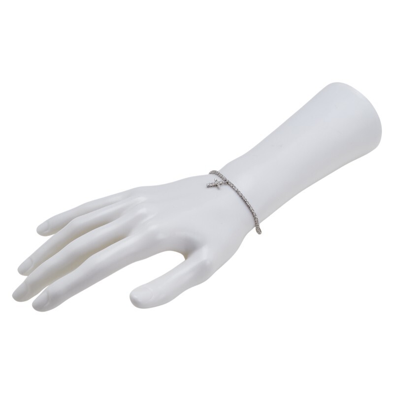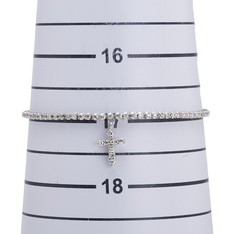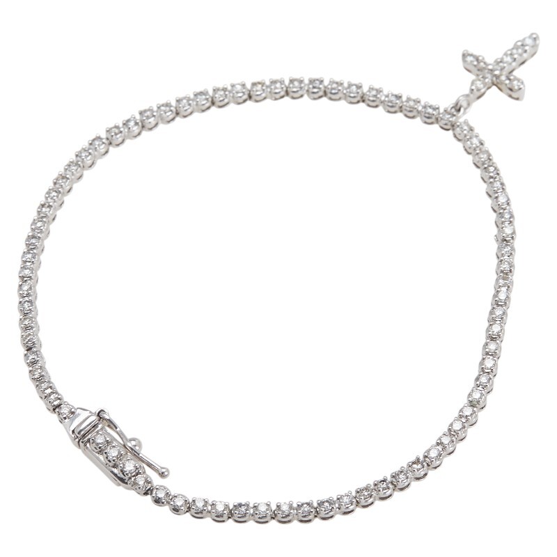 K18WG ホワイトゴールド ダイヤモンド1.10ct クロス 十字架 モチーフ テニスチェーン ブレスレット レディース 中古