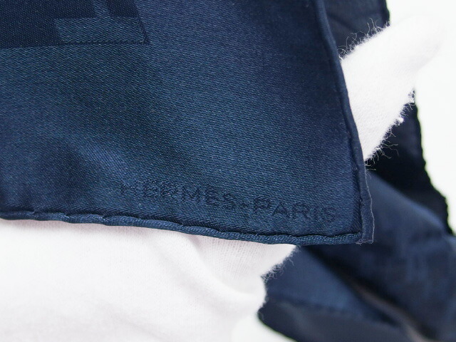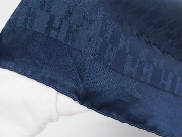 | 商品名 | H柄 プチカレ カレ40 ミニスカーフ ポケットチーフ ハンカチ ハンカチーフ シルク100% 絹 ダークネイビー(濃紺) Hロゴ レディース メンズ |