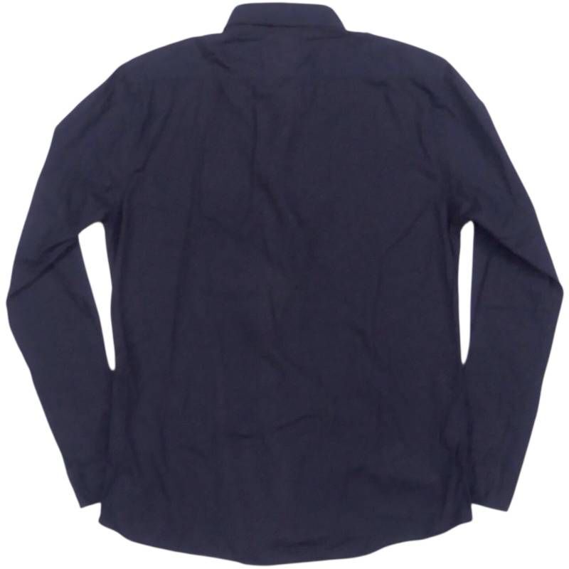 上品な紺色の長袖シャツ