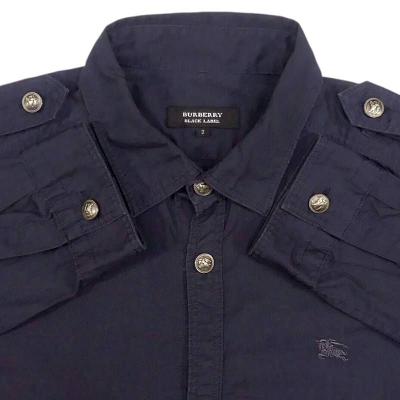 即決★BURBERRY BLACK LABEL★メンズ M 廃版 シャツ バーバリーブラックレーベル 2 紺 ネイビー 三陽商会 刺繍 長袖