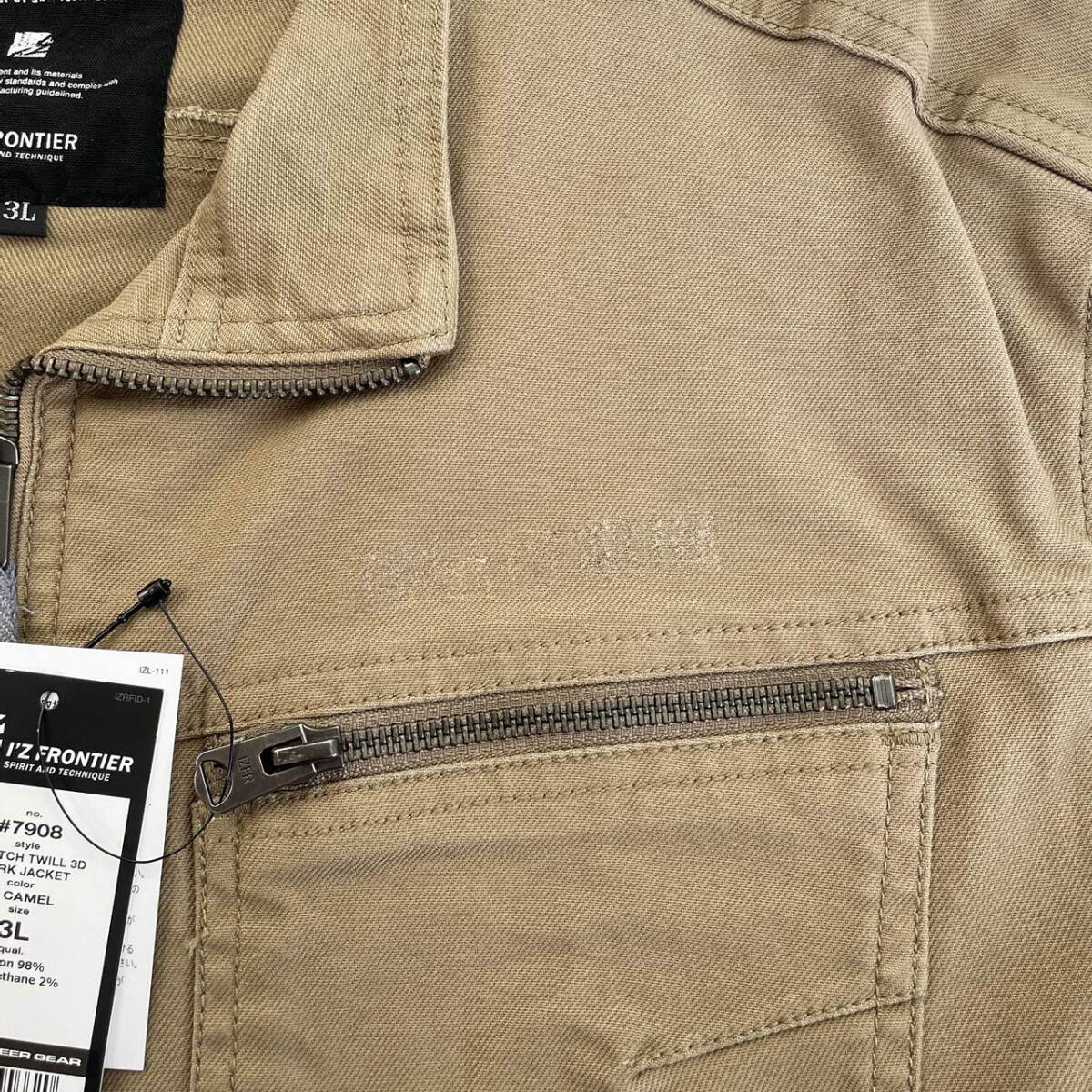 [訳あり品 襟元 左胸刺繍痕あり] 作業服 通年 アイズフロンティア ストレッチ3Dツイルワークジャケット 7908 3Lサイズ キャメル