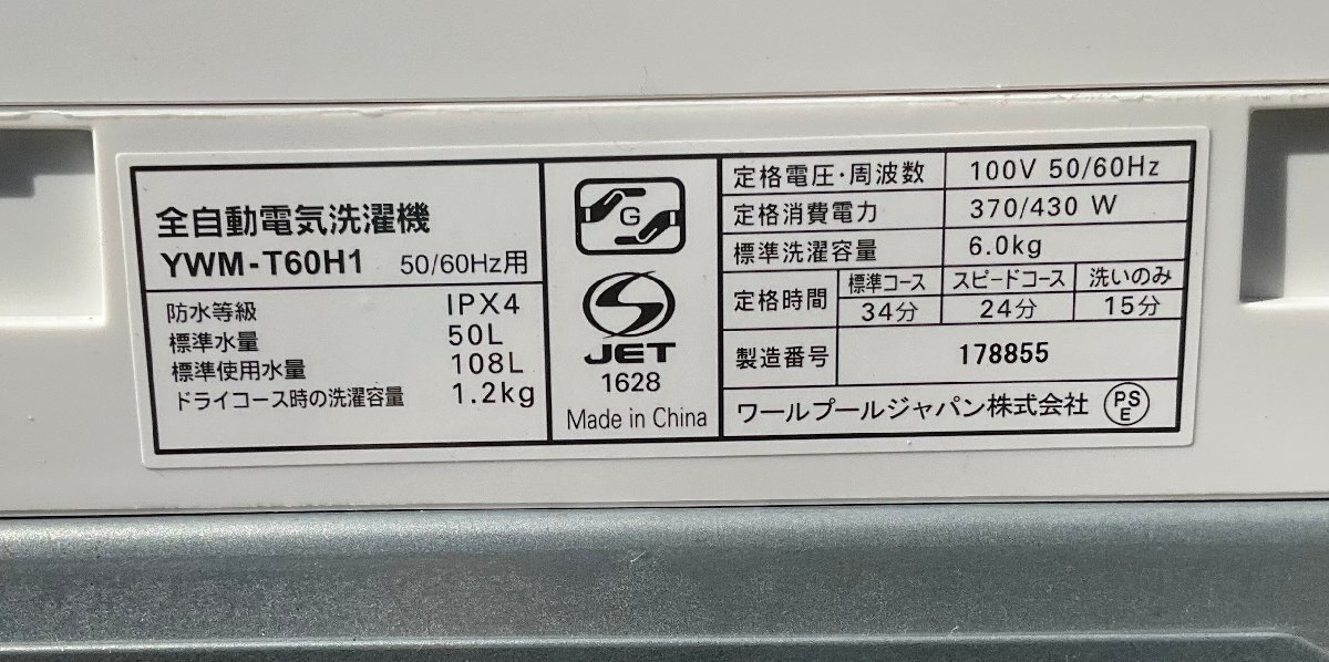 【RKGSE-259】特価!YAMADA/6kg/全自動洗濯機/YWM-T60H1/中古/2022年製/店頭引取推奨商品/弊社近隣有料配達も可/即決あり