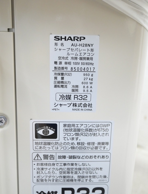 【未使用品】【室外機のみ】シャープ製/ルームエアコン/10畳用/AU-H28NY(7090776)