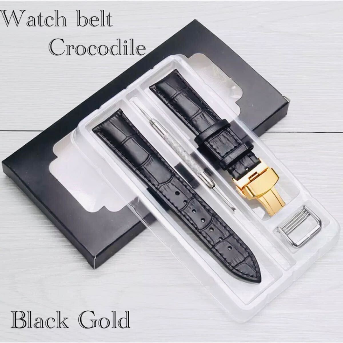 腕時計ベルト 時計バンド 替えベルト Dバックル レザー カーフ革 クロコダイル型押し ゴールド 腕時計 時計 修理 レザーベルト 20mm