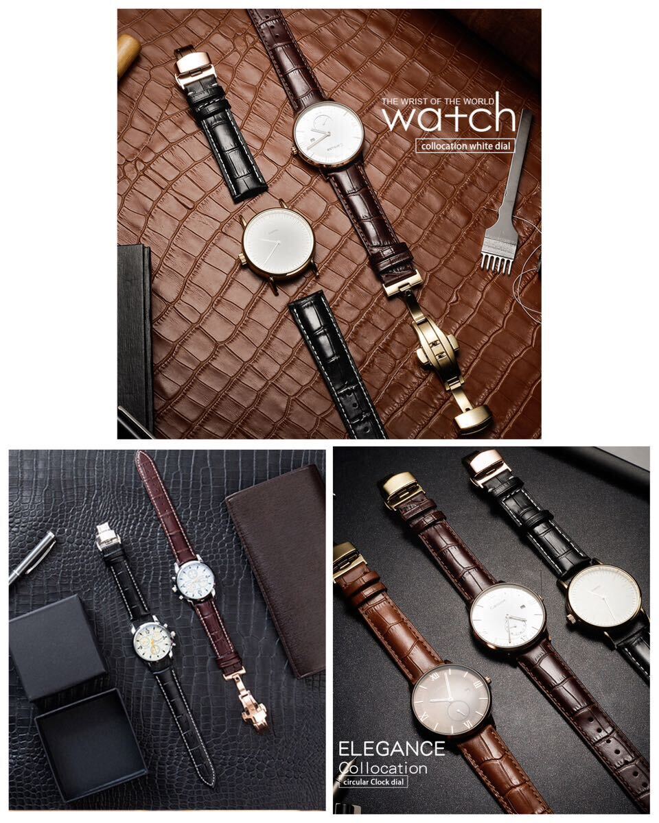 メンズ 腕時計 時計ベルト Dバックル カーフ革 クロコダイル型押し 20mm 革 替えベルト ブランド