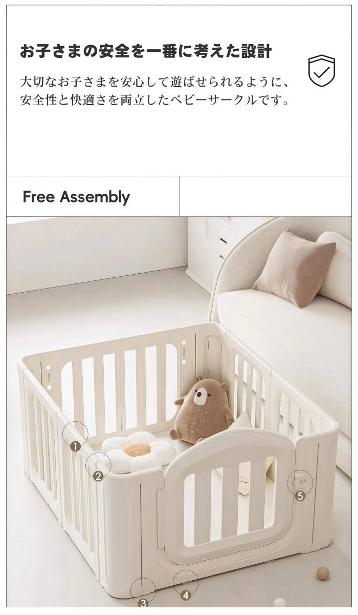 • 【お子さまの安全を一番に考えた設計】大切なお子さまを安心して遊ばせられるように、安全性と快適さを両立したベビーサークルです。