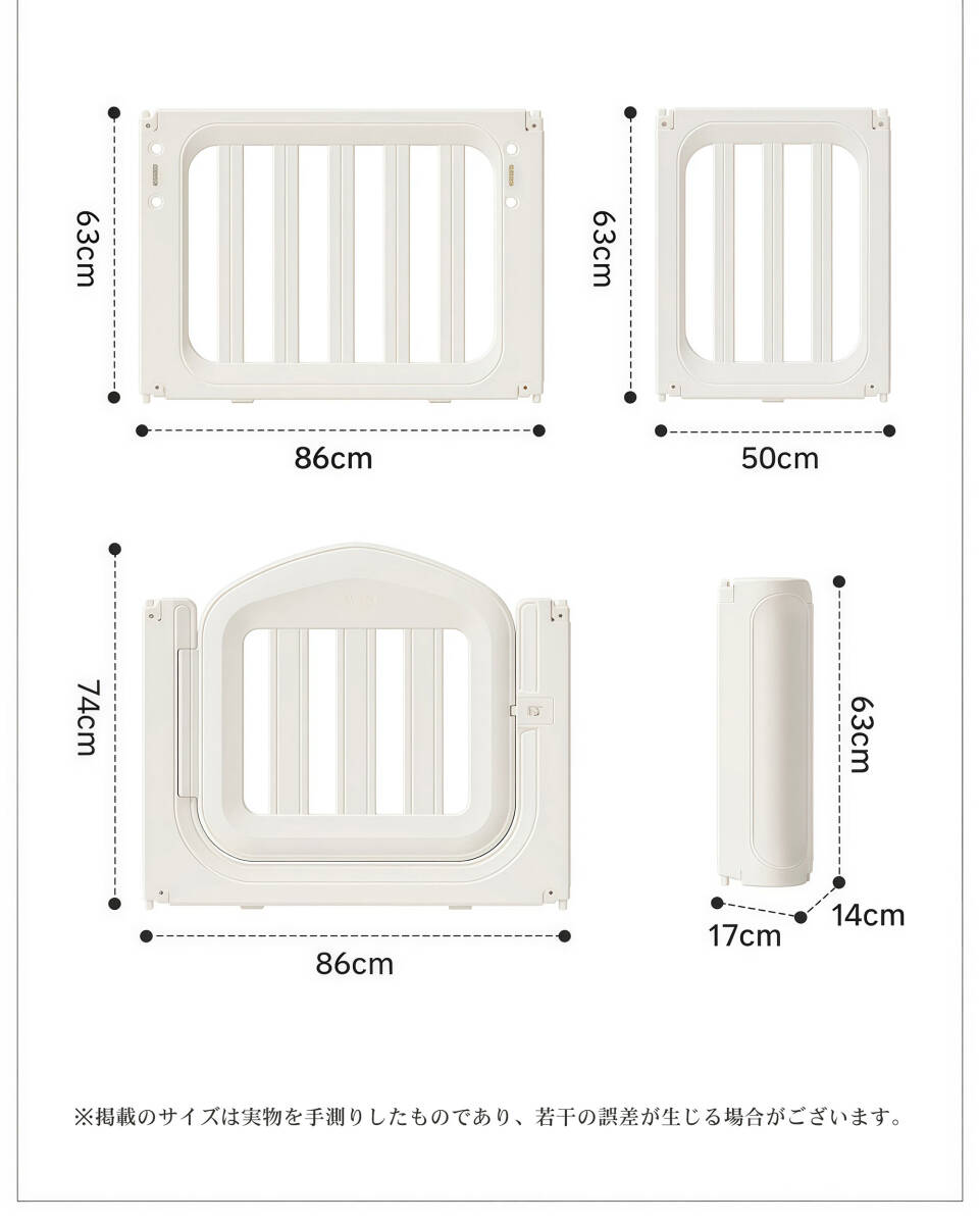 • 【より安全な高さ】パネルの高さはたっぷりの63cm、安全性を考慮した高さで、お子様が乗り越えにくい仕様です。 5cmの間隔で手足が挟まりにくいお子様が指や手を挟んでケガをしないように、各パネルの隙間や間隔などは緻密に計算されています。