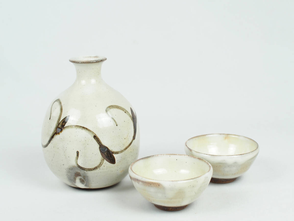 十三代 中里太郎右衛門窯 唐津絵粉引 酒器 (徳利/酒盃二客) 付属品:共箱/栞 唐津焼 絵唐津【詳細写真多数有り】