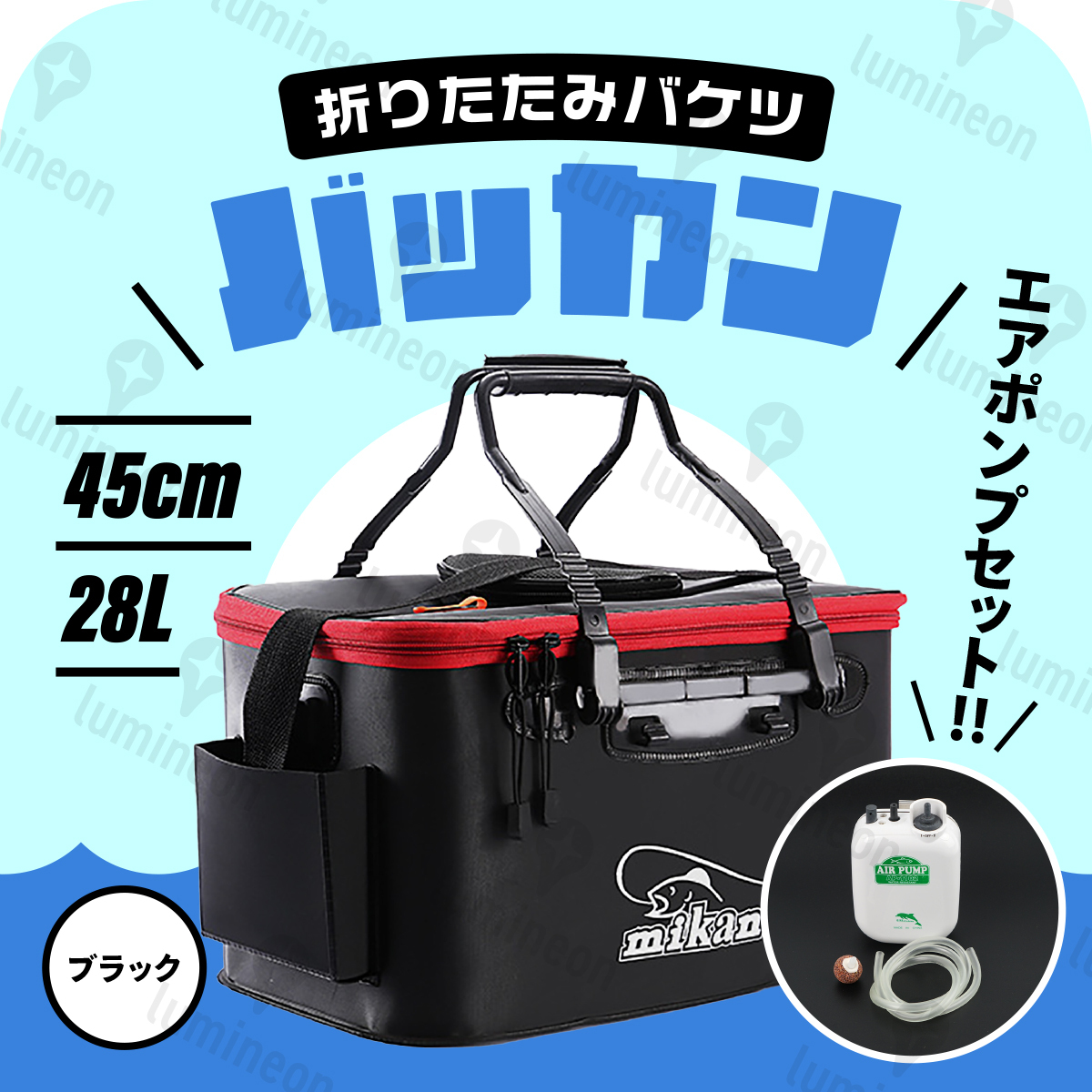 バッカン 45cm 折りたたみ 釣り バケツ エアー ポンプ 付き エア フタ 水汲み バケツ 肩掛け ショルダー 袋 ホルダー 魚 大容量 g040cd