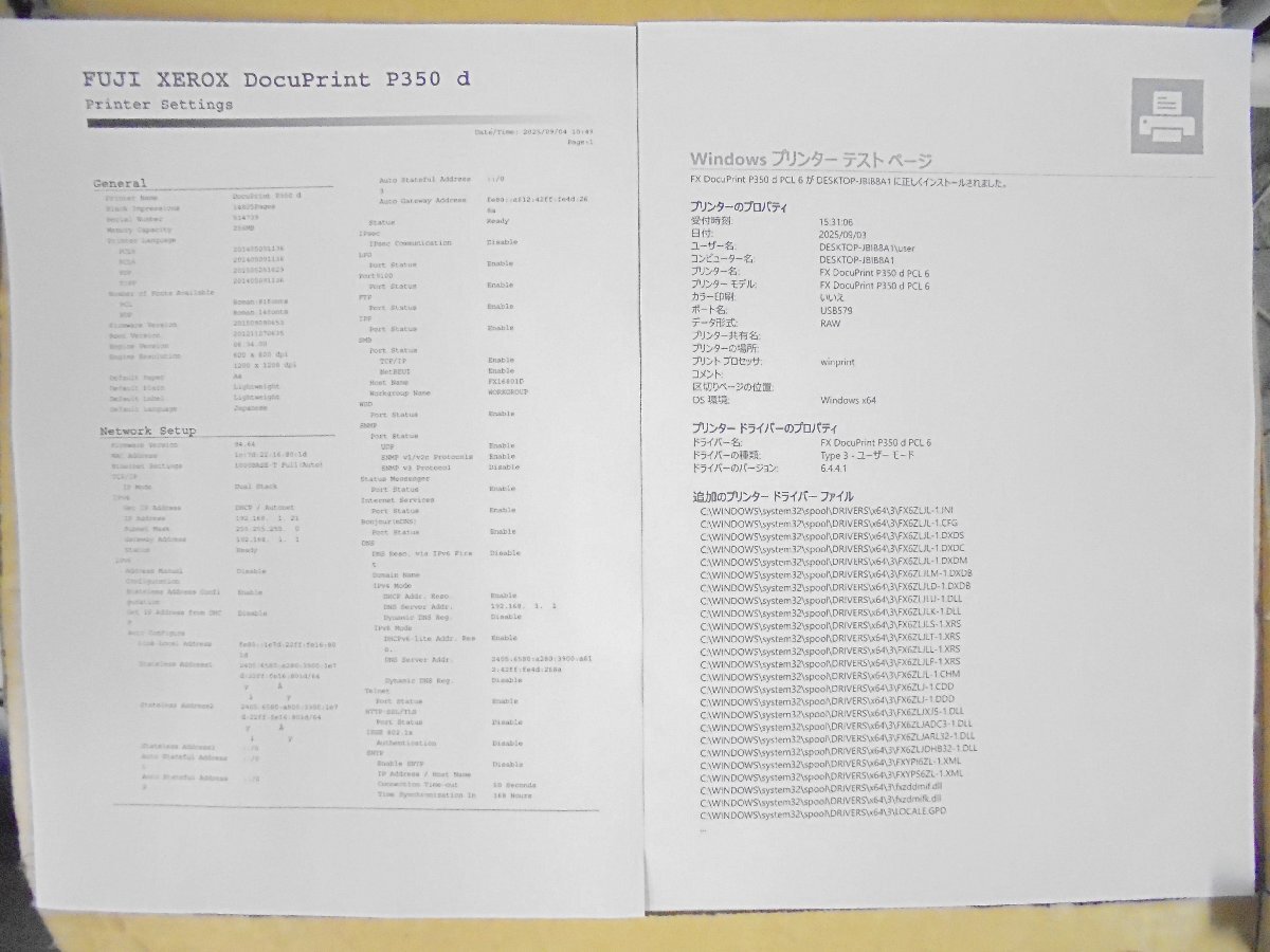 標準トレイ、手差しトレイ印刷動作確認済み。 連続印刷動作確認済み。 自動両面印刷動作確認済み。 USB、LAN動作確認済み。 |