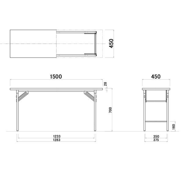アイリスチトセ 折りたたみテーブル 棚なし ナチュラル 幅1500×奥行450×高さ700mm 茶色 1台 折り畳み AK-OT-1545-NA 管理番号YN253AF
