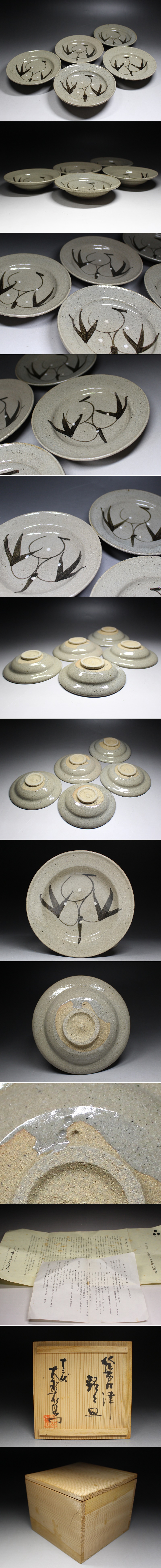 | ■絵唐■十三代 太郎衛門・銘々皿・5客・和皿・絵唐津・栞・共箱・f8140h | ||||||||||||||||||||