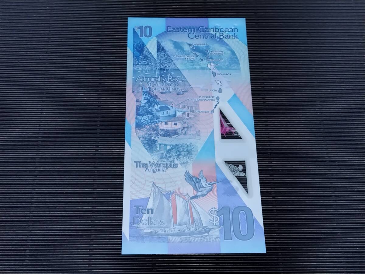 東カリブ諸国 10 Dollars札 ポリマー紙幣 ND=発行年未記載(2019年) 未使用 エリザベス女王 鳥 p-W57 #GS919683
