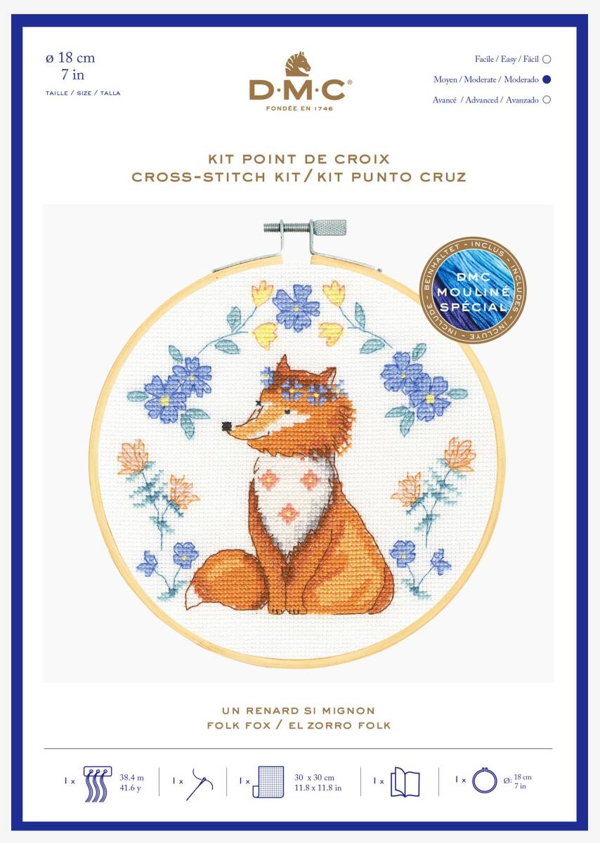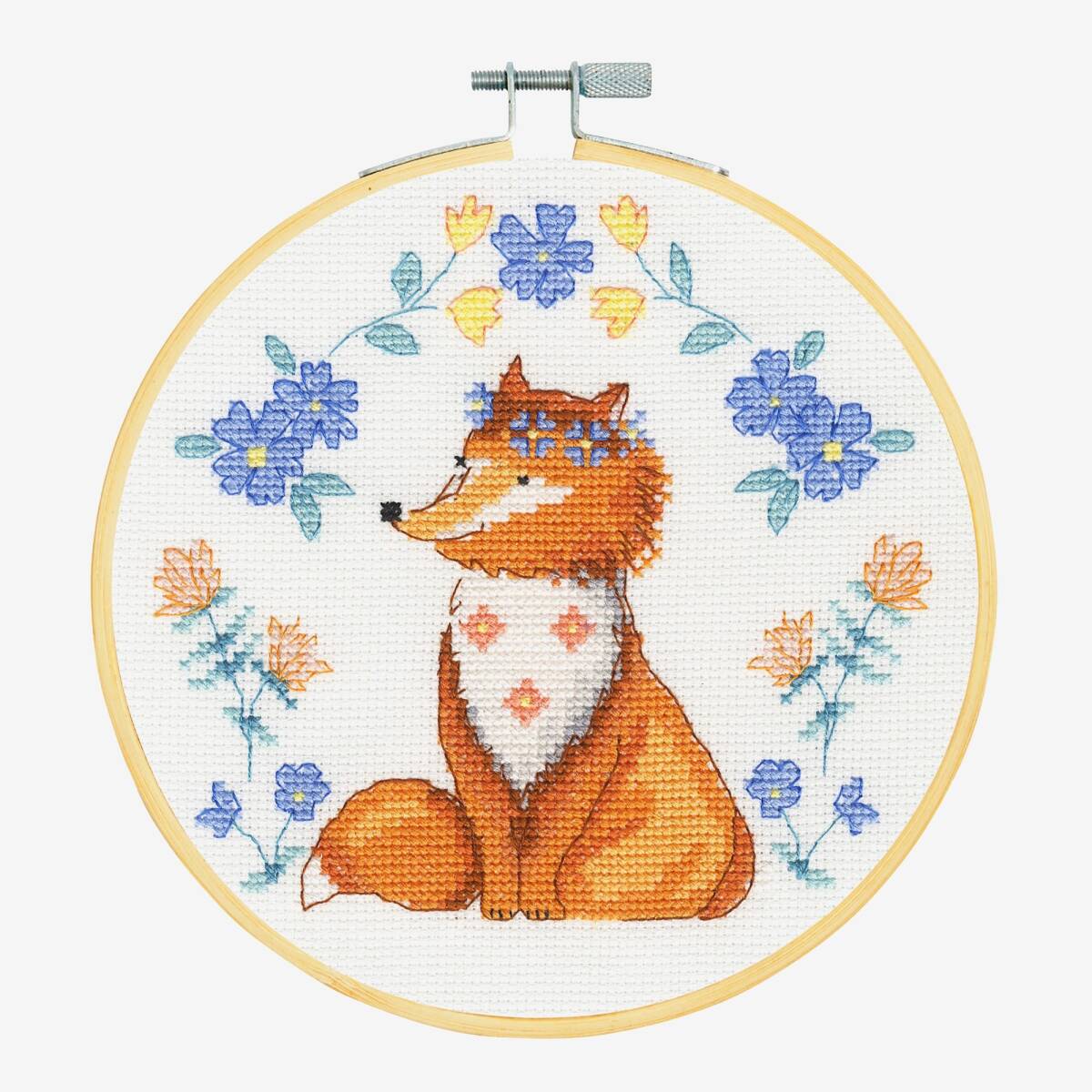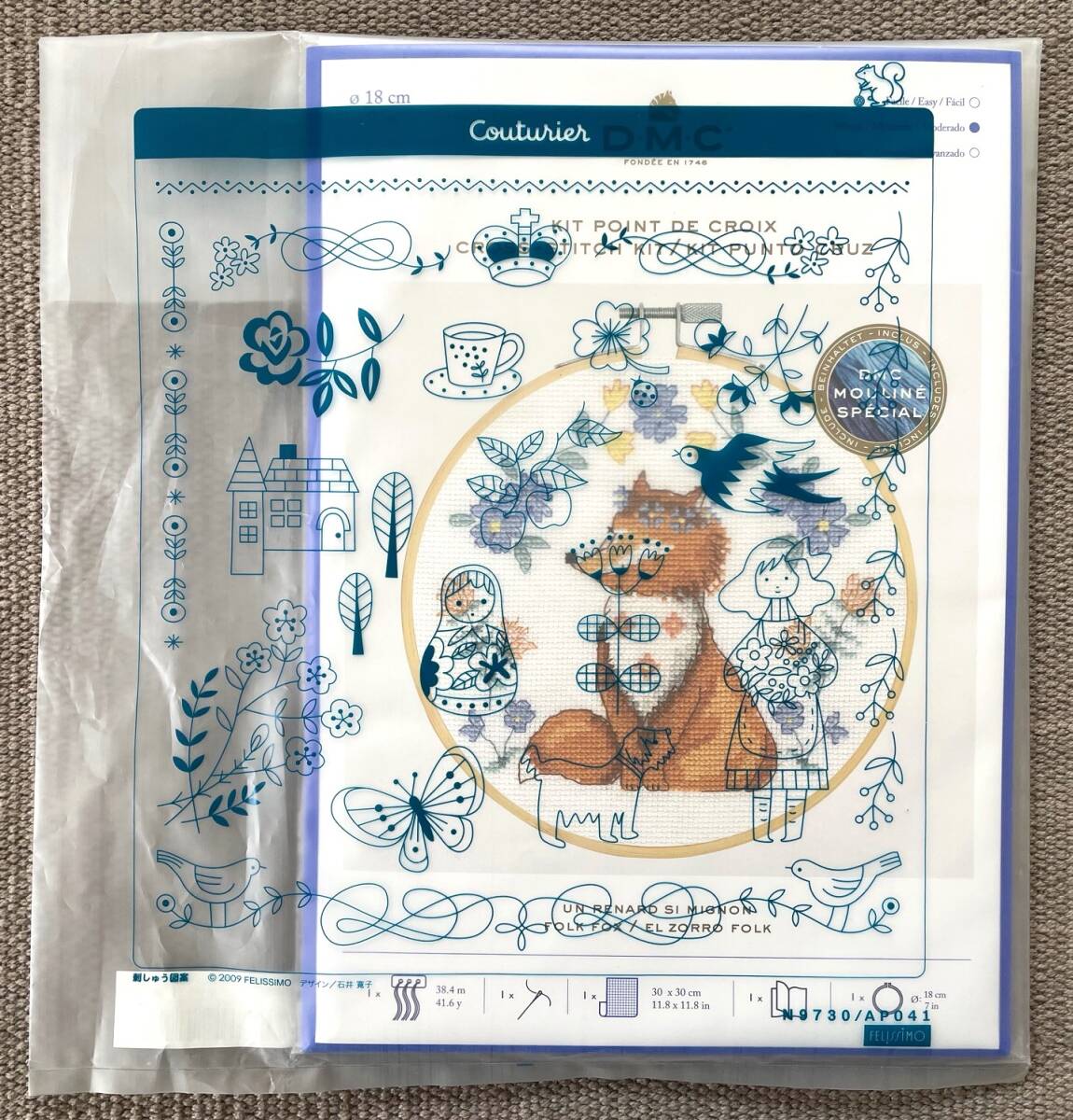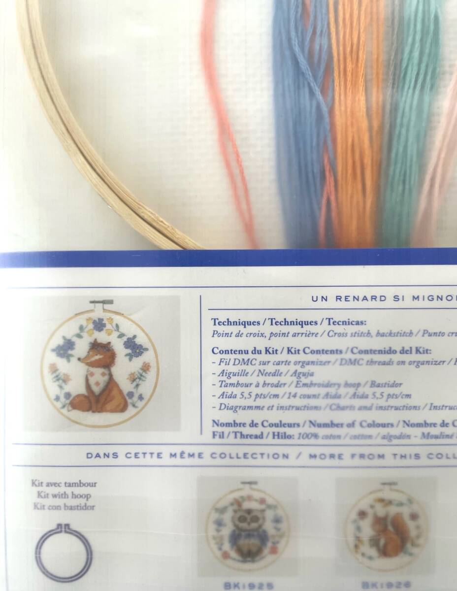 ◆フェリシモ◆DMC◆キュートアニマルクロスステッチ◆キット◆キツネ◆刺繍枠付き◆クチュリエ