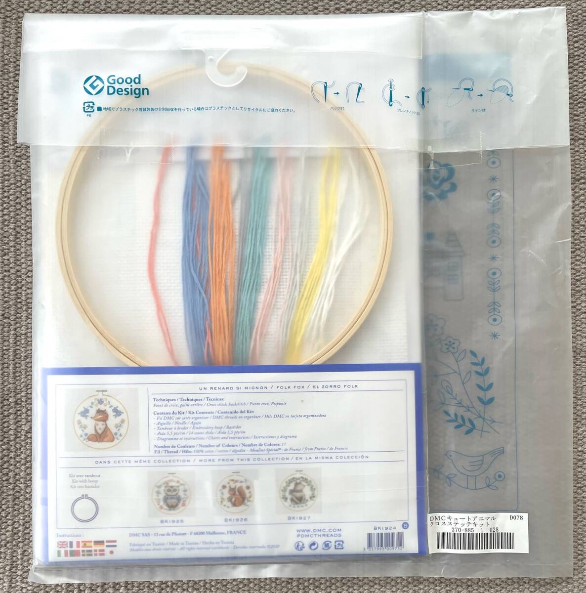 そのまま飾れる直径約18cmの刺しゅう枠付きの、DMCオリジナル刺しゅうキット。