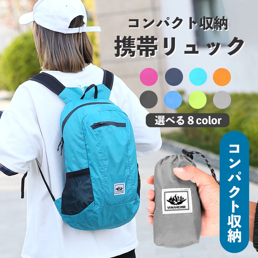 機能性抜群の携帯リュックが新登場!コンパクトになる折りたたみデザインで、旅行やアウトドアにぴったりの軽量バックパックです。外出時に必須のアイテムを収納できるため、便利さと使いやすさが魅力。また、ポータブルなので、収納時にはかさばらず場所を取りません。容量は約20Lでフロントポケット1個、500mlペットボルトも入って使いやすいサイドポケット2個で付属の収納袋1個付きます。
