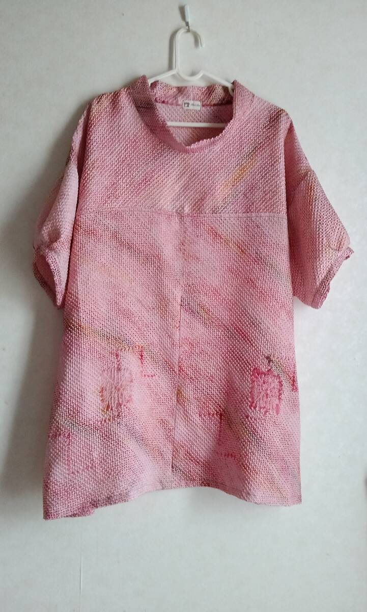 着物リメイク ★ 絹総絞り  ~ チュニック ★ ピンクグラデーション