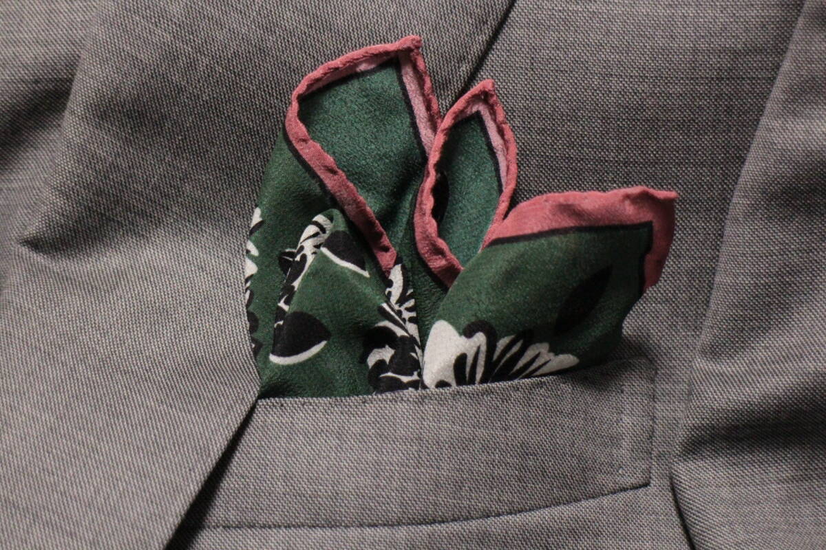 チーフ。流行にも関係無く、末永く使える至極のチーフ、この機会に是非、ご検討下さい。