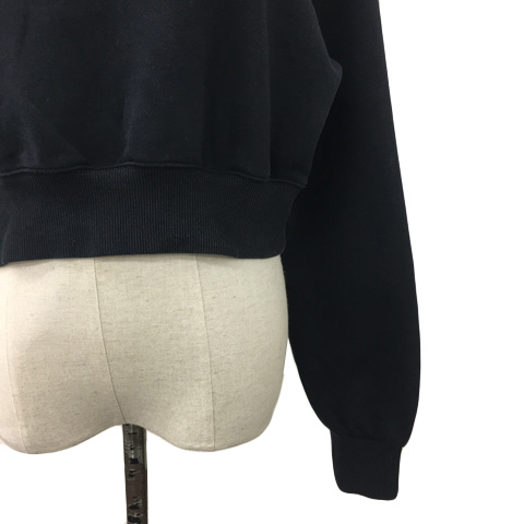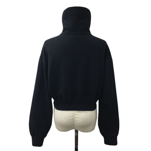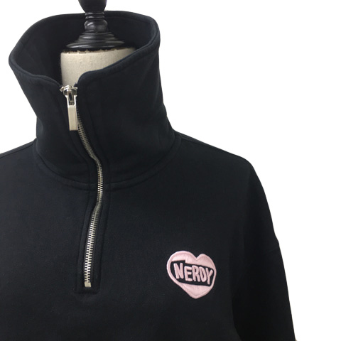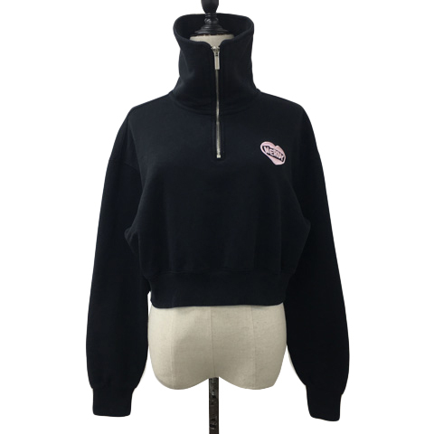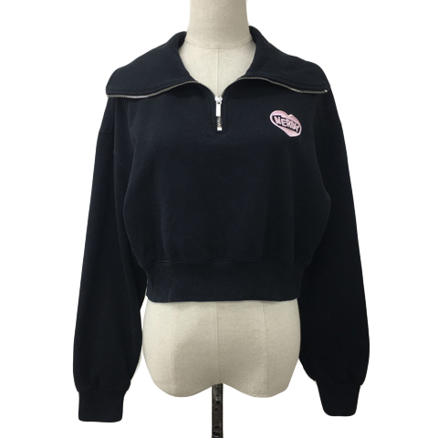 ノルディ トレーナー スウェット プルオーバー スタンドカラー ビッグカラー ハーフジップ 刺繍 ロゴ クロップド 長袖 S 黒 ピンク