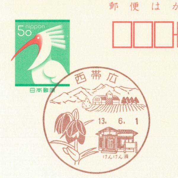 風景印☆初日☆北海道・西帯広・H13.6.1