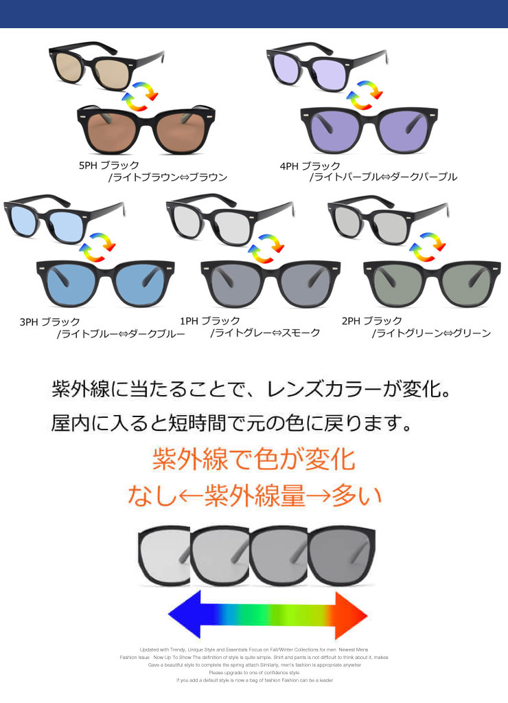 商品説明 | ウェリントンタイプのサングラスに話題の調光偏光レンズが登場。 |