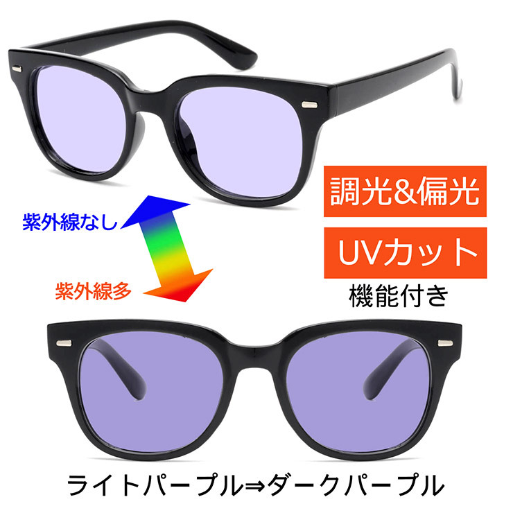商品名 | 【新品】 F ブラック×パープル 調光 偏光 サングラス カラーレンズ ウェリントン 色が変わるレンズ 紫外線対策 メンズ レディース ユニセックス |