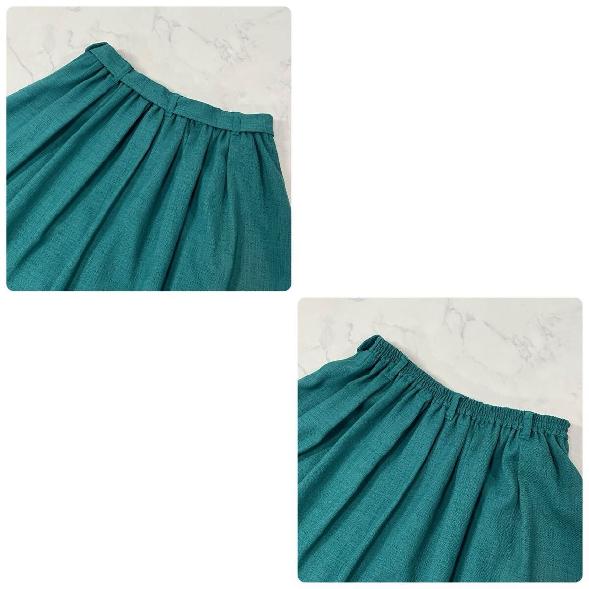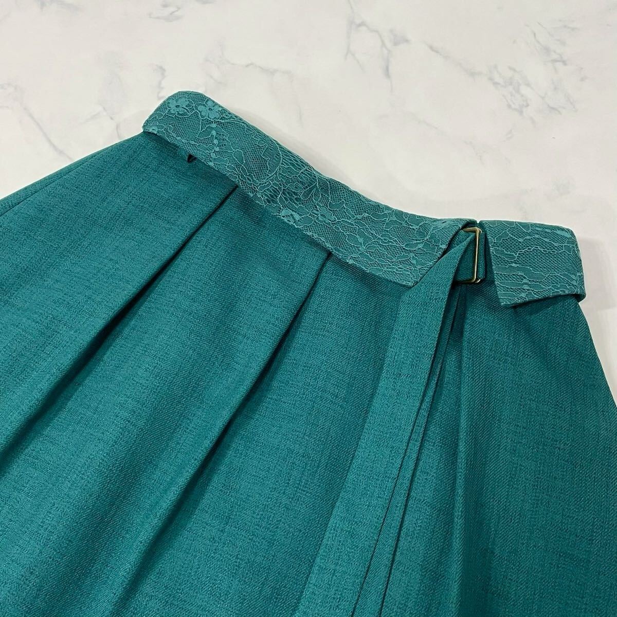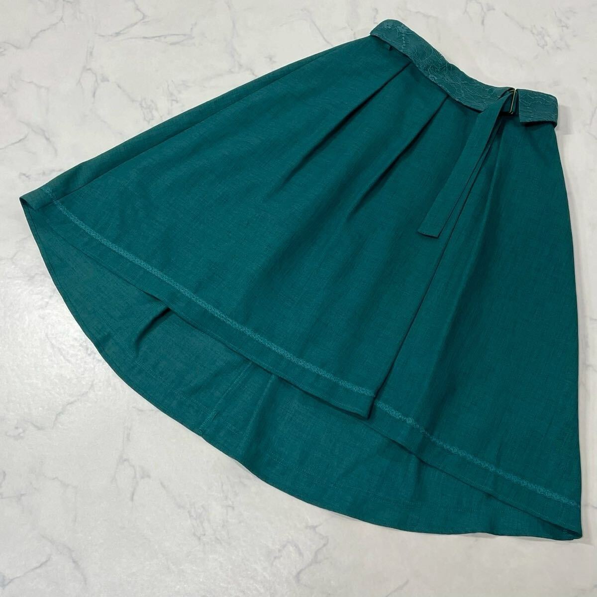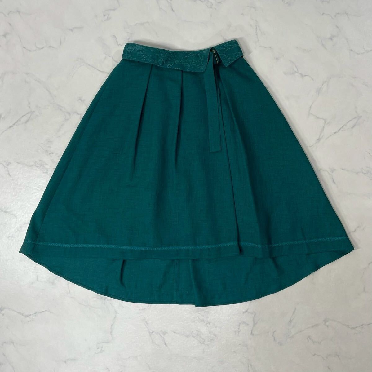 切替 異素材 裏地付き 後ろウエストゴム レース タック ボックス 共布ベルト フィッシュテール フレア ひざ丈 スカート
