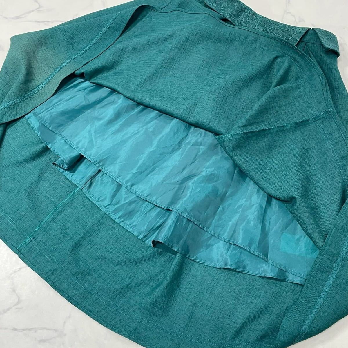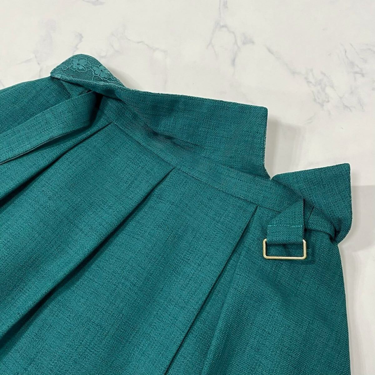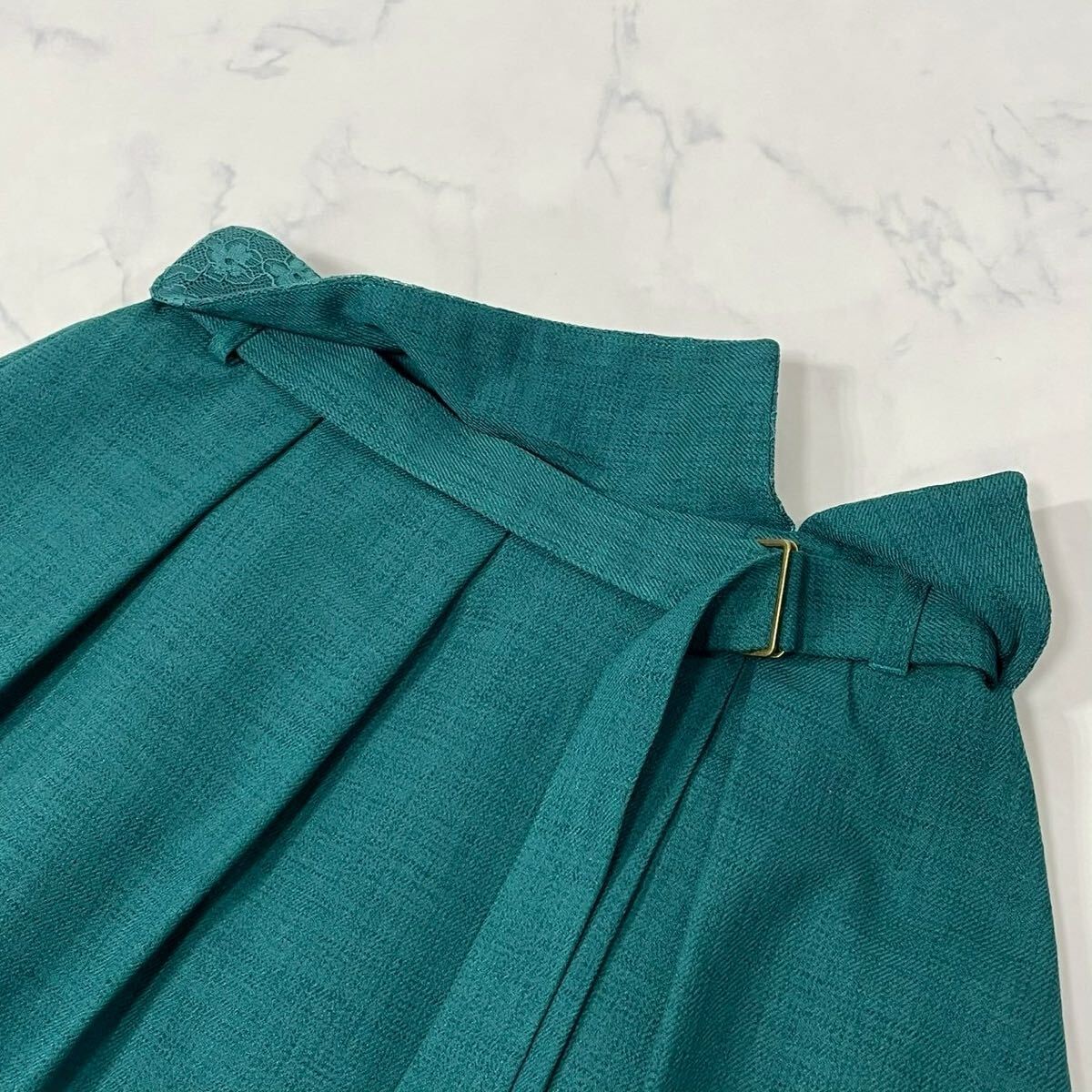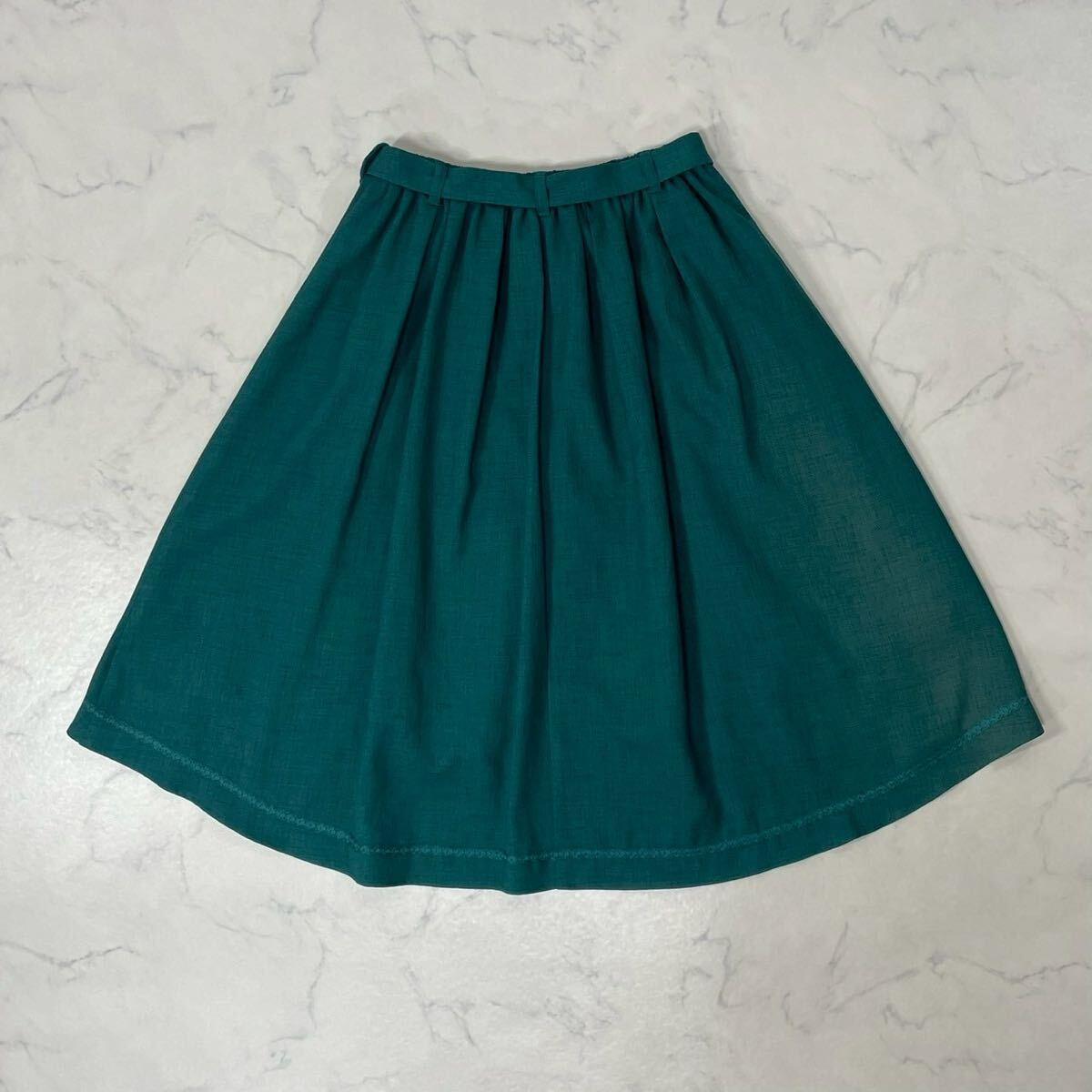 切替 異素材 裏地付き 後ろウエストゴム レース タック ボックス 共布ベルト フィッシュテール フレア ひざ丈 スカート