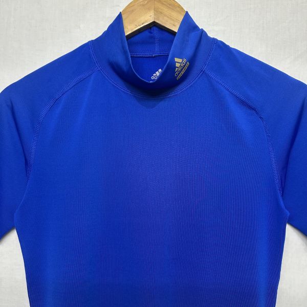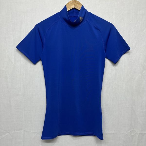 〇adidas アディダス ショート スリーブ 半袖 インナー アンダー シャツ モック ネック M 青 ブルー スポーツ トレーニング