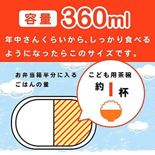 説明 ●コンパクトでしっかりつめやすい長方形。 ●しっかりとめられるロック式。フタが開けやすいエア調節弁も付いています。 ●中子(中容器)付き。お子様の成長に合わせて、しっかり食べるようになったら大きめサイズ。 ●容量360ml。おべんとう箱の半分に入るご飯の量は、子供用茶碗約1杯分です。 ●電子レンジ・食洗機対応OK(フタを取る)。 ●安心の日本製です。