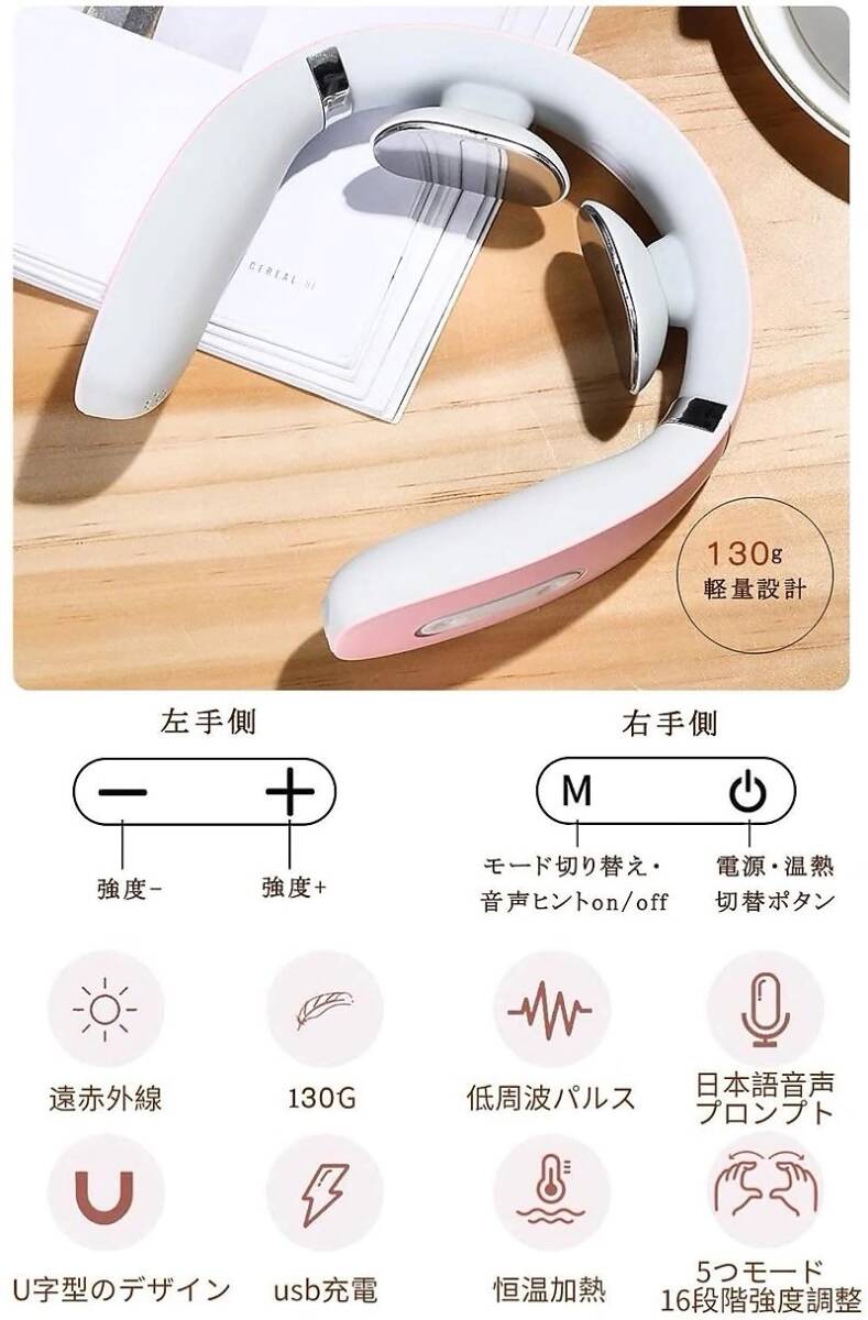 ピンク色☆首マッサージャー ネックマッサージャー 首 肩 USB充電式 リラックス ストレス解消 安全静音 軽量 日本語取扱説明書