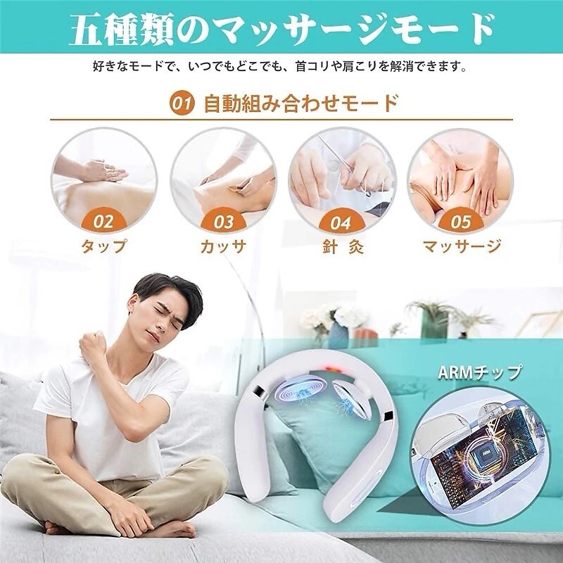 【5種マッサージモード&16段階EMS強度調節可能】この首マッサージャーはタップ、カッサ、鍼灸、手揉み5種マッサージモードがあります。 16段階の力加減を、自由に調整できます。 強度を上げれば首のまわりの筋肉もマッサージ、自分のお好みの強さとモードでご使用可能。 毎日15分だけの使用で、一日の疲れを吹き飛ばします。