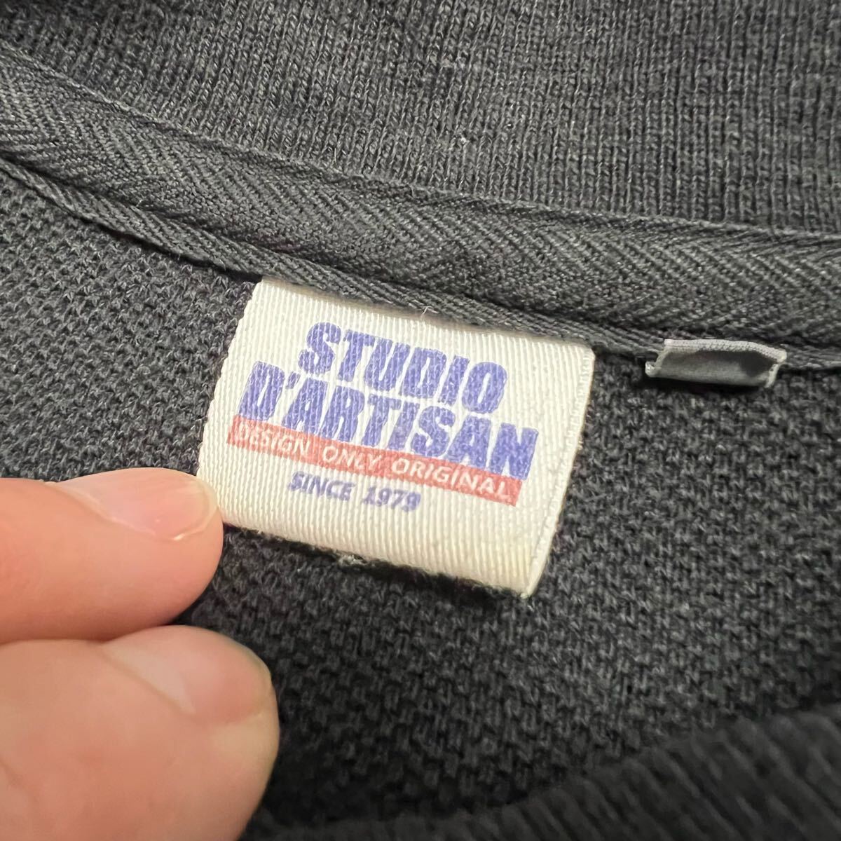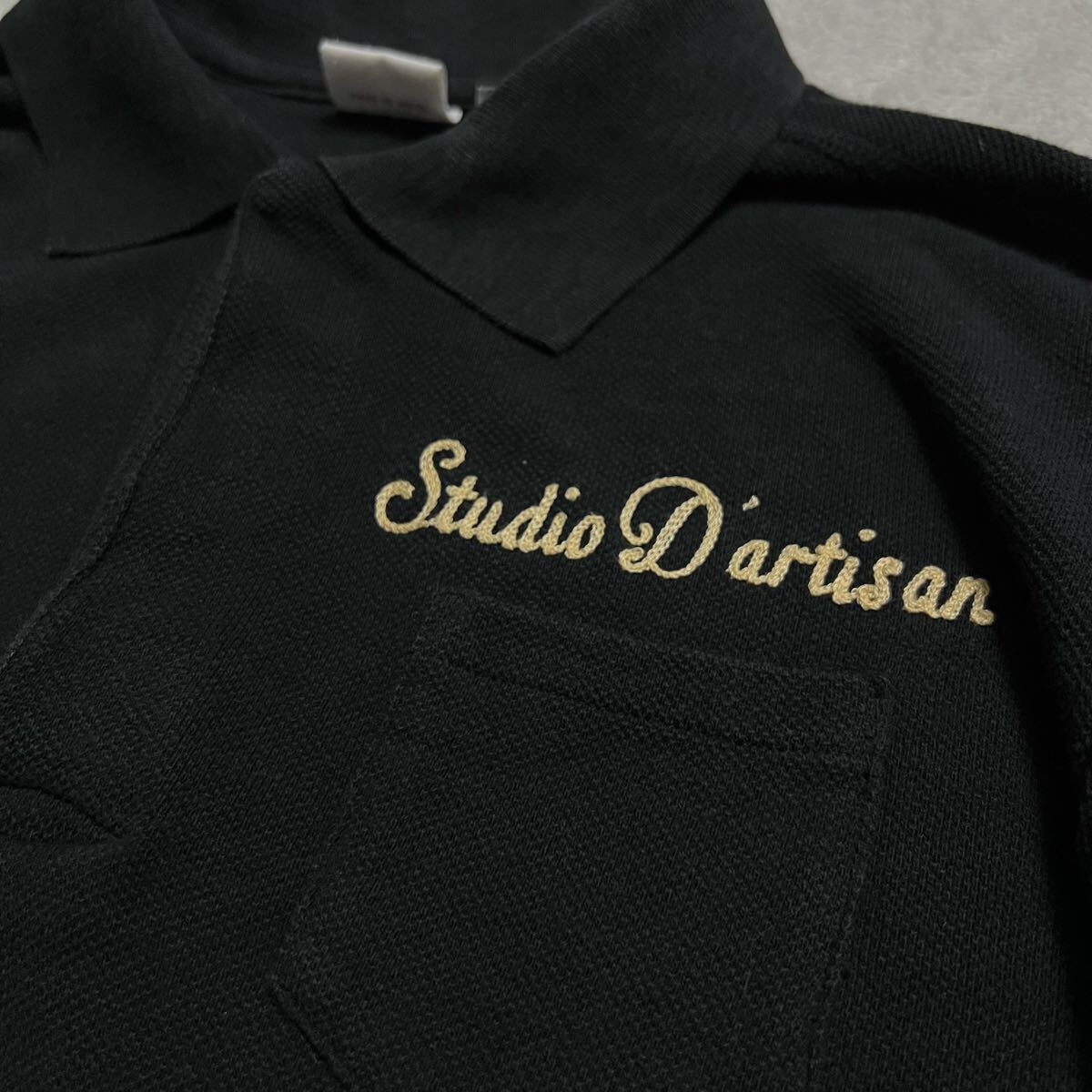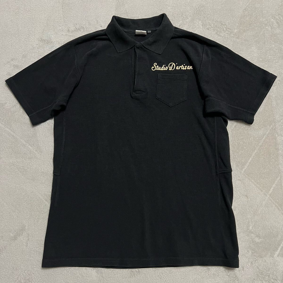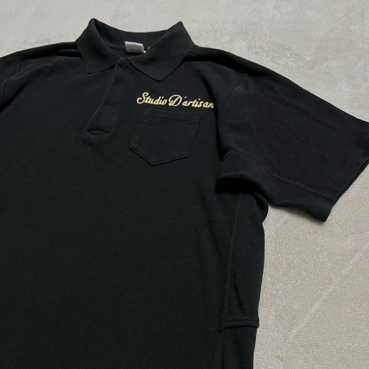 ★人気★STUDIO DARTISAN ステュディオダルチザン 半袖ポロシャツ 黒 ブラック 刺繍 サイズM 綿100% コットン メンズ D'artisan R-7414