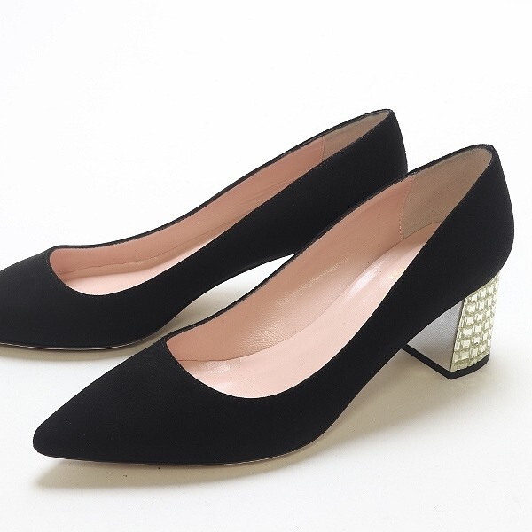 【HA236】◆kate spade ケイトスペード スエード ポインテッドトゥ デザインヒール パンプス 黒 ブラック 6 | |