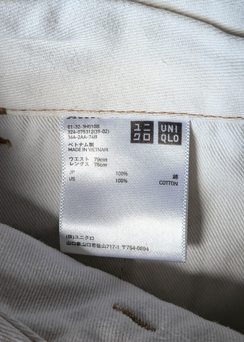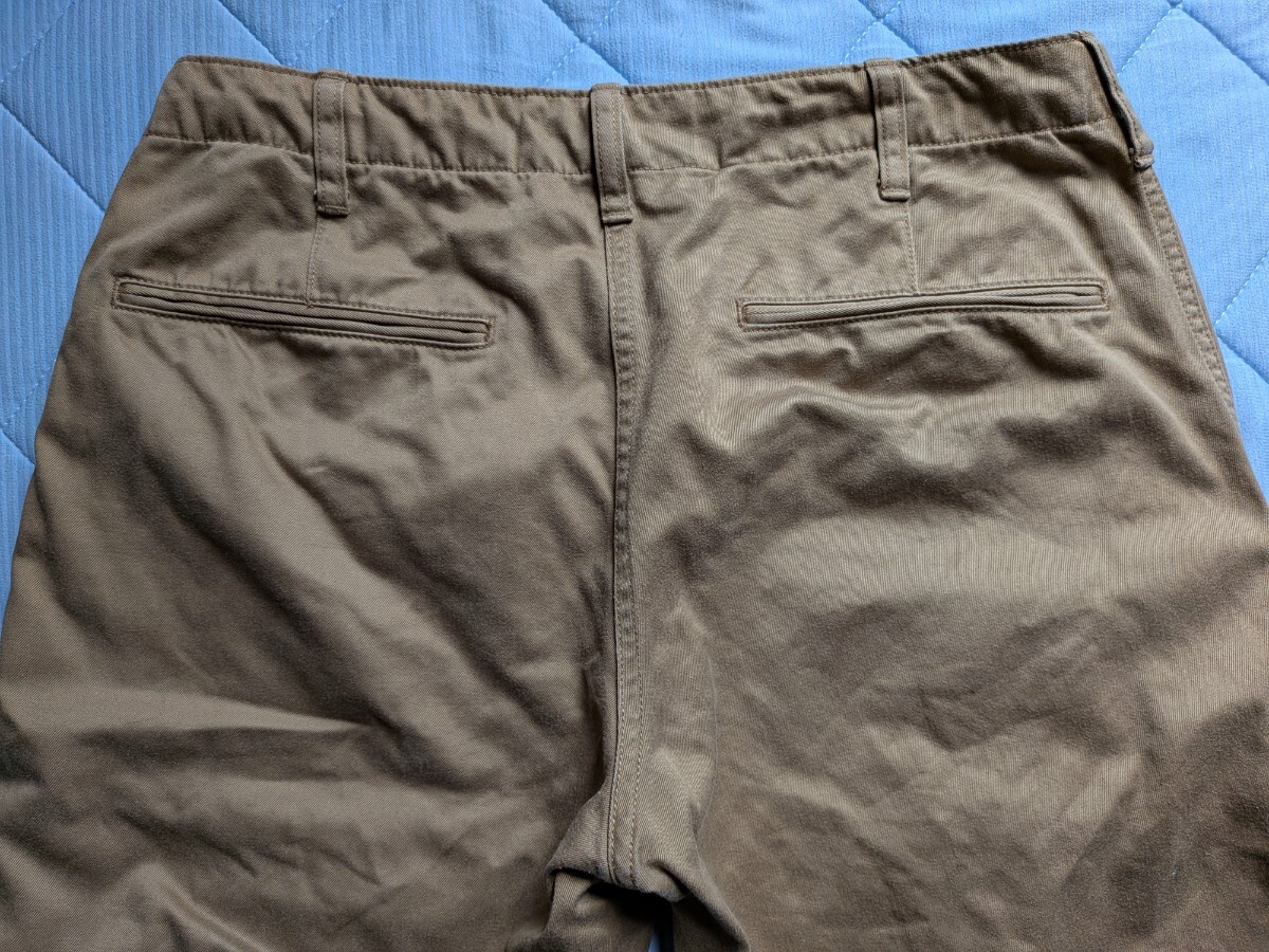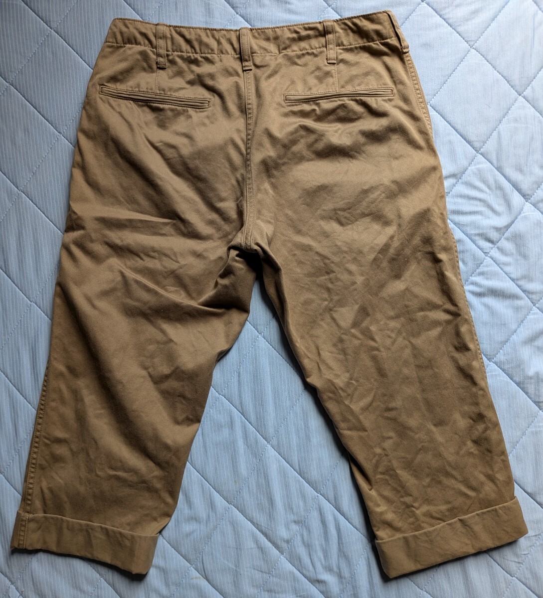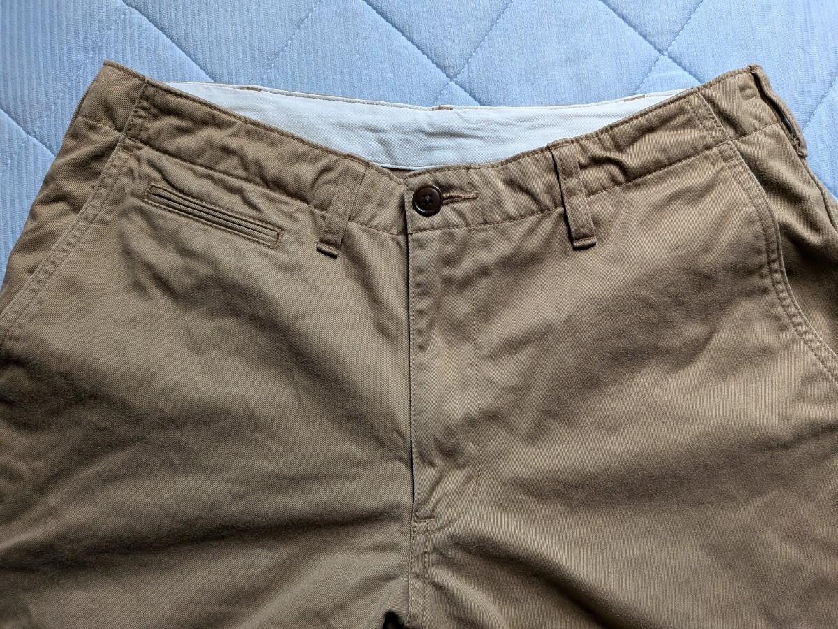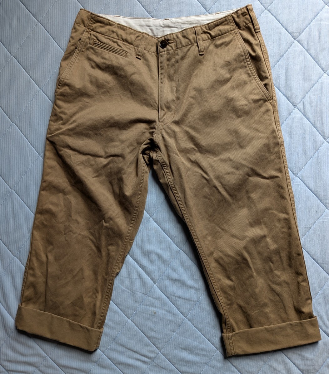 ユニクロのチノパンをカットして七分丈にリメイクしたものです。