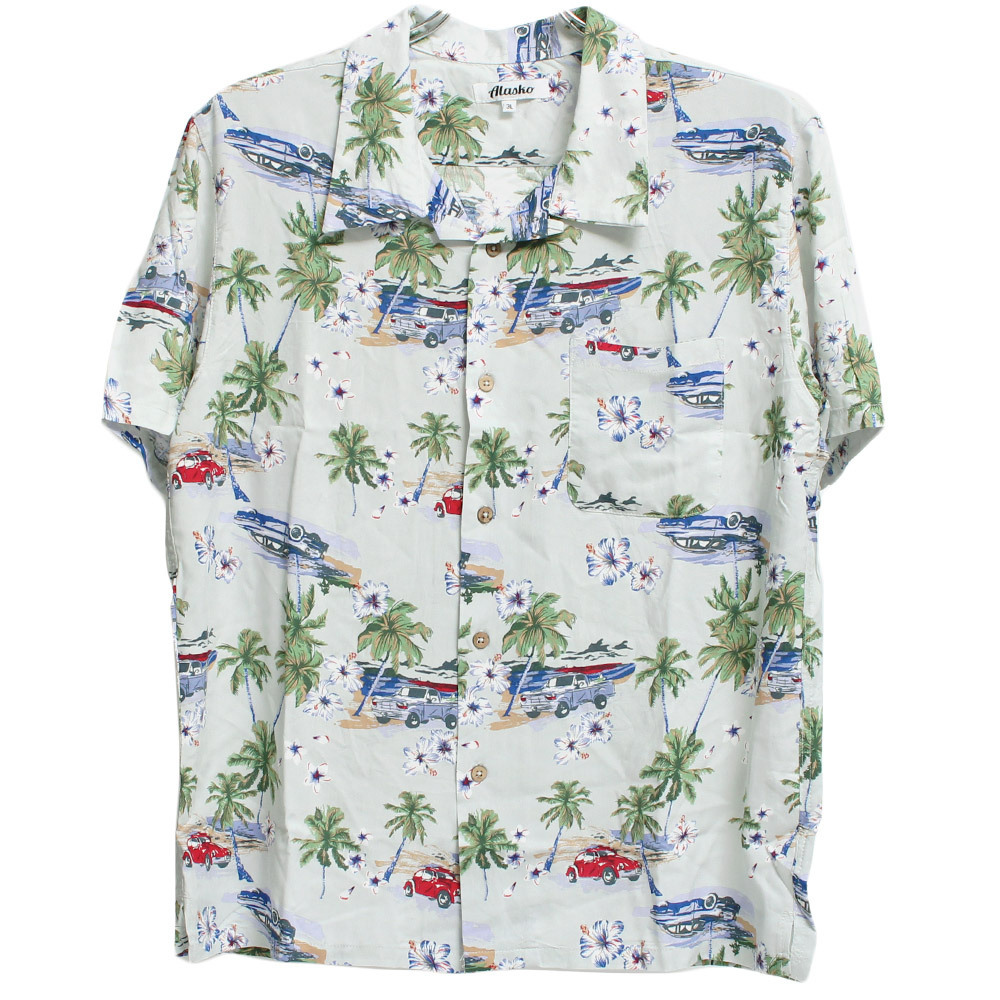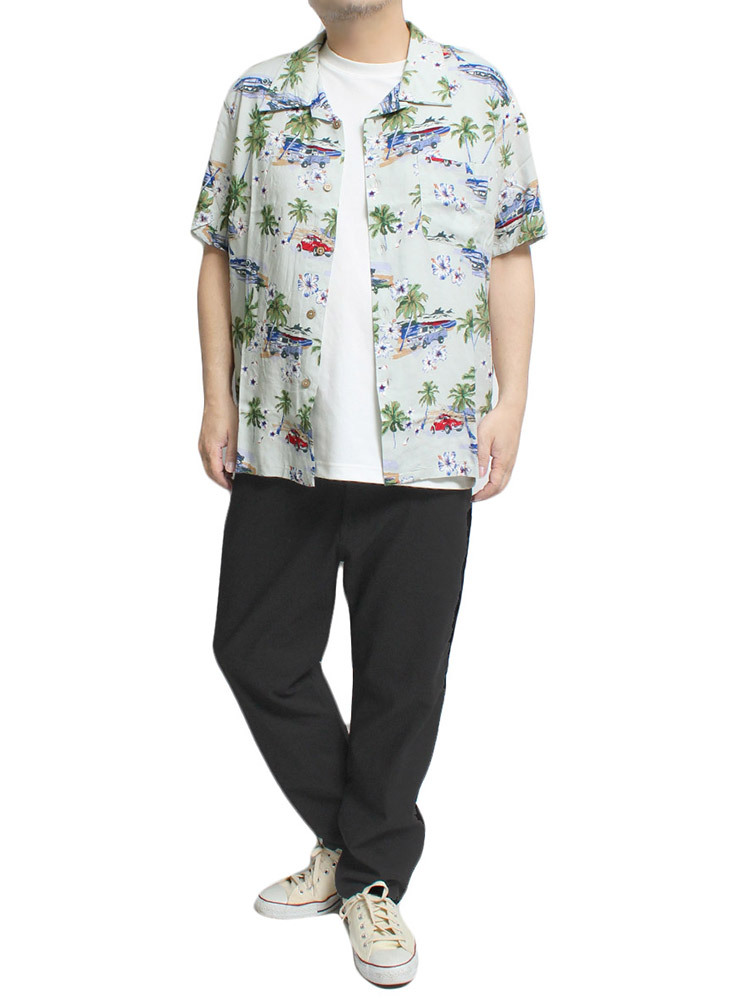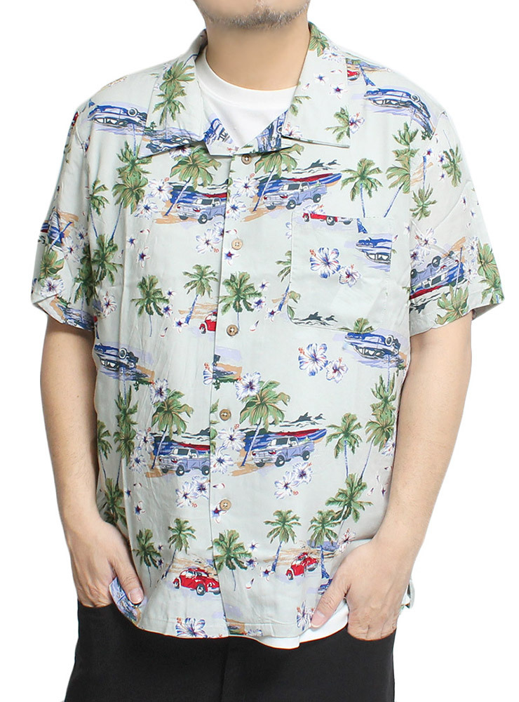 商品名 | 【新品】 L ミント アロハシャツ メンズ 大きいサイズ 半袖シャツ レーヨン ボタニカル 花柄 和柄 オープンカラーシャツ |