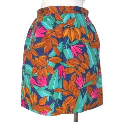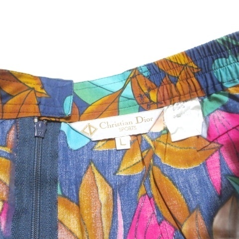クリスチャンディオール Christian Dior スポール SPORTS スカート ひざ丈 タイト リーフ柄 Dカン付き L マルチカラー X レディース