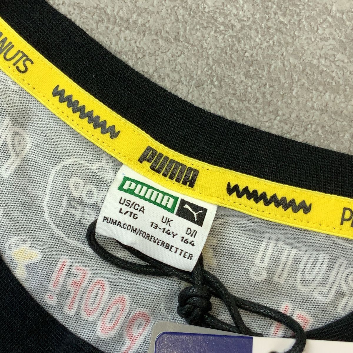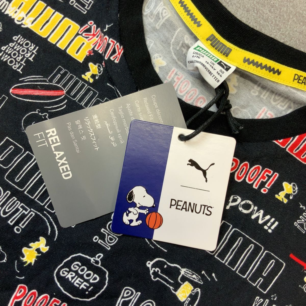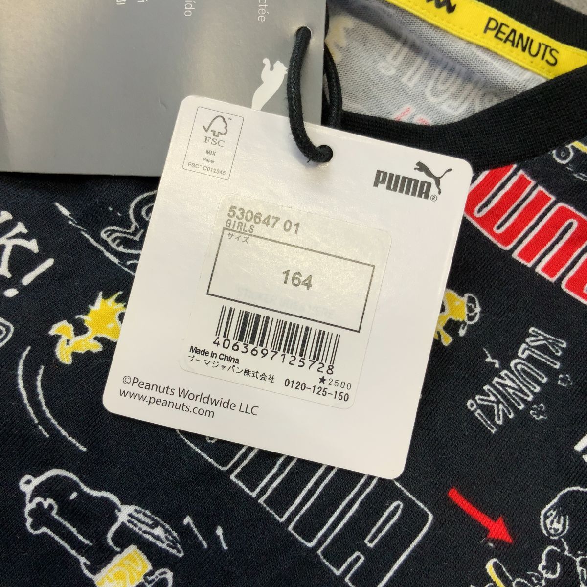 新品 タグ付 PUMA × PEANUTS プーマ ピーナッツ 総柄 tシャツ ガールズ 164 Lサイズ ブラック