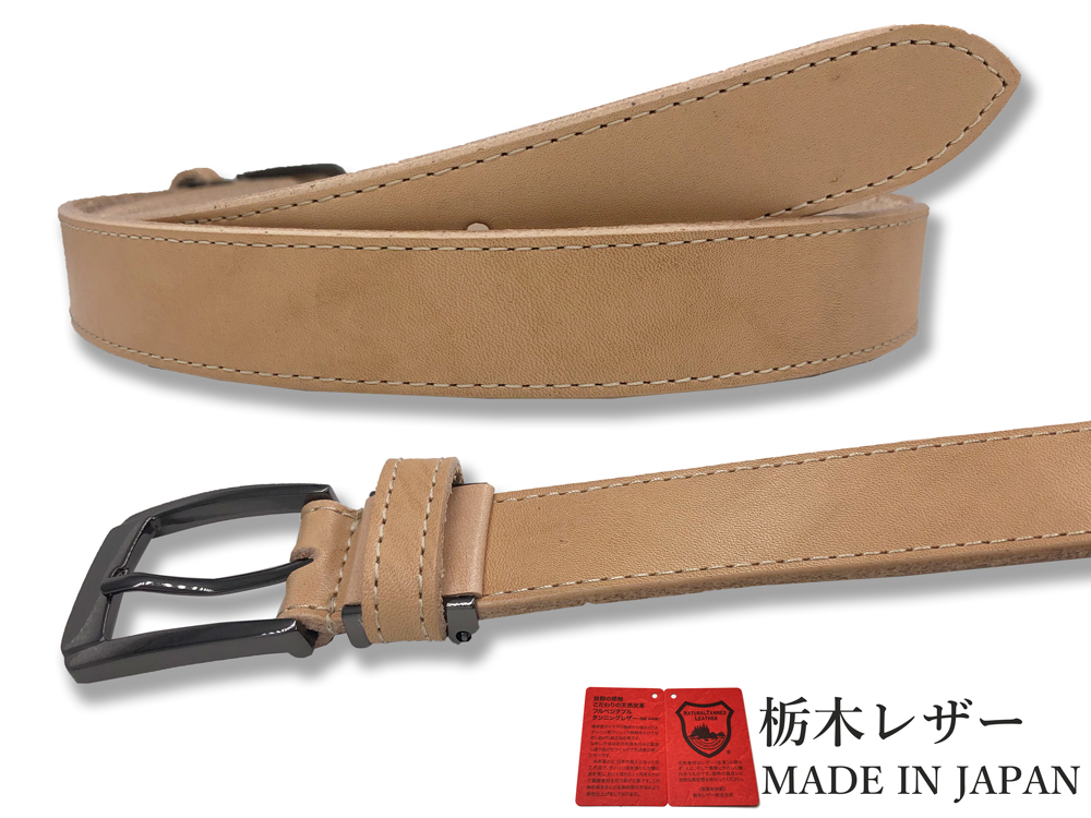 新品 栃木レザーベルト 本革 牛革 メンズ レディース ナチュラル ヌメ 国産 日本製 カジュアル 紳士 通勤 シンプル 学生 30mm W026NT