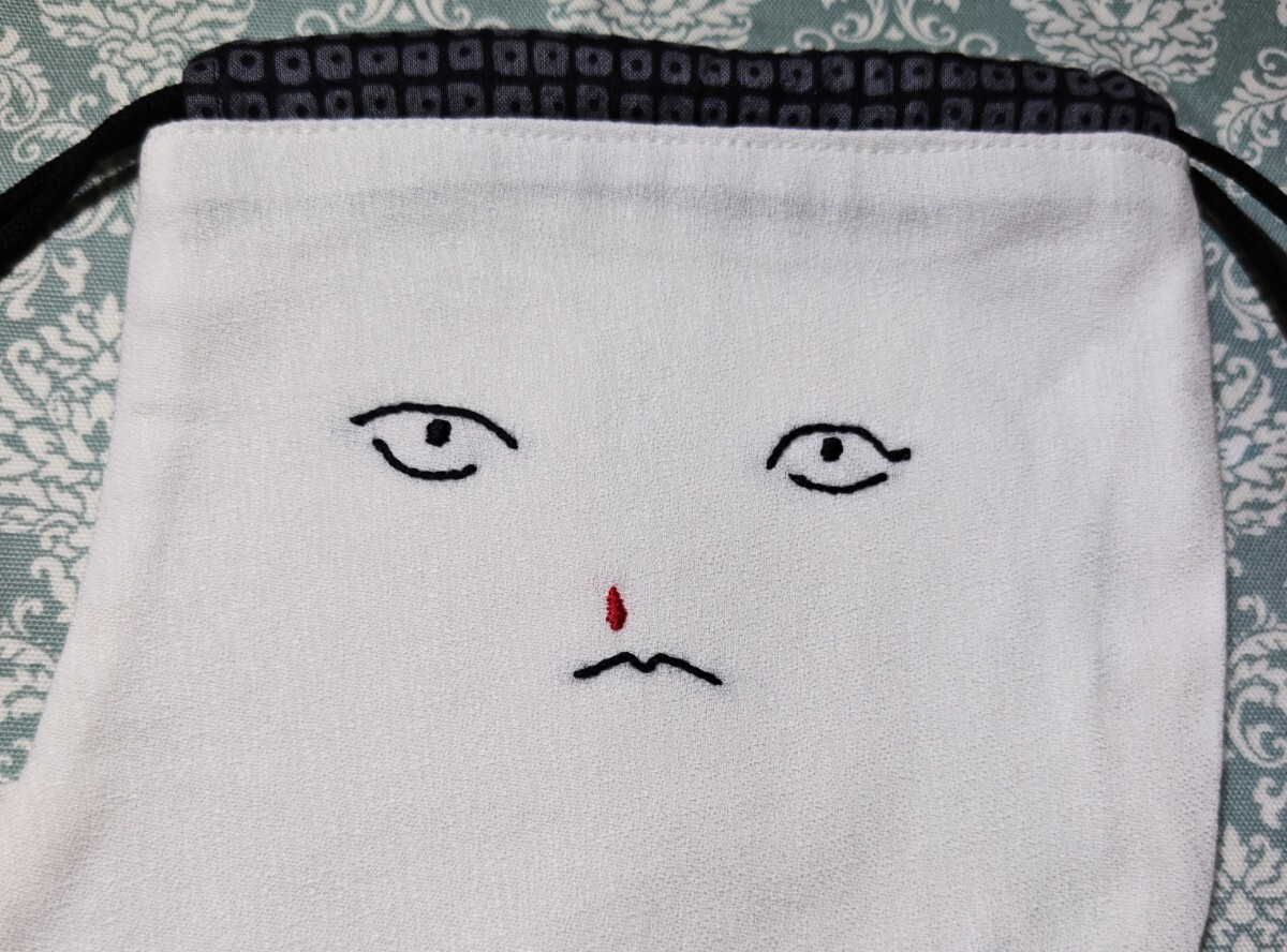 ハンドメイド☆おバケちゃんのきんちゃく袋「はなぢ出た」オリジナル ポーチ ハロウィン コスプレ 給食袋 納涼 和服 送料込み匿名配  331