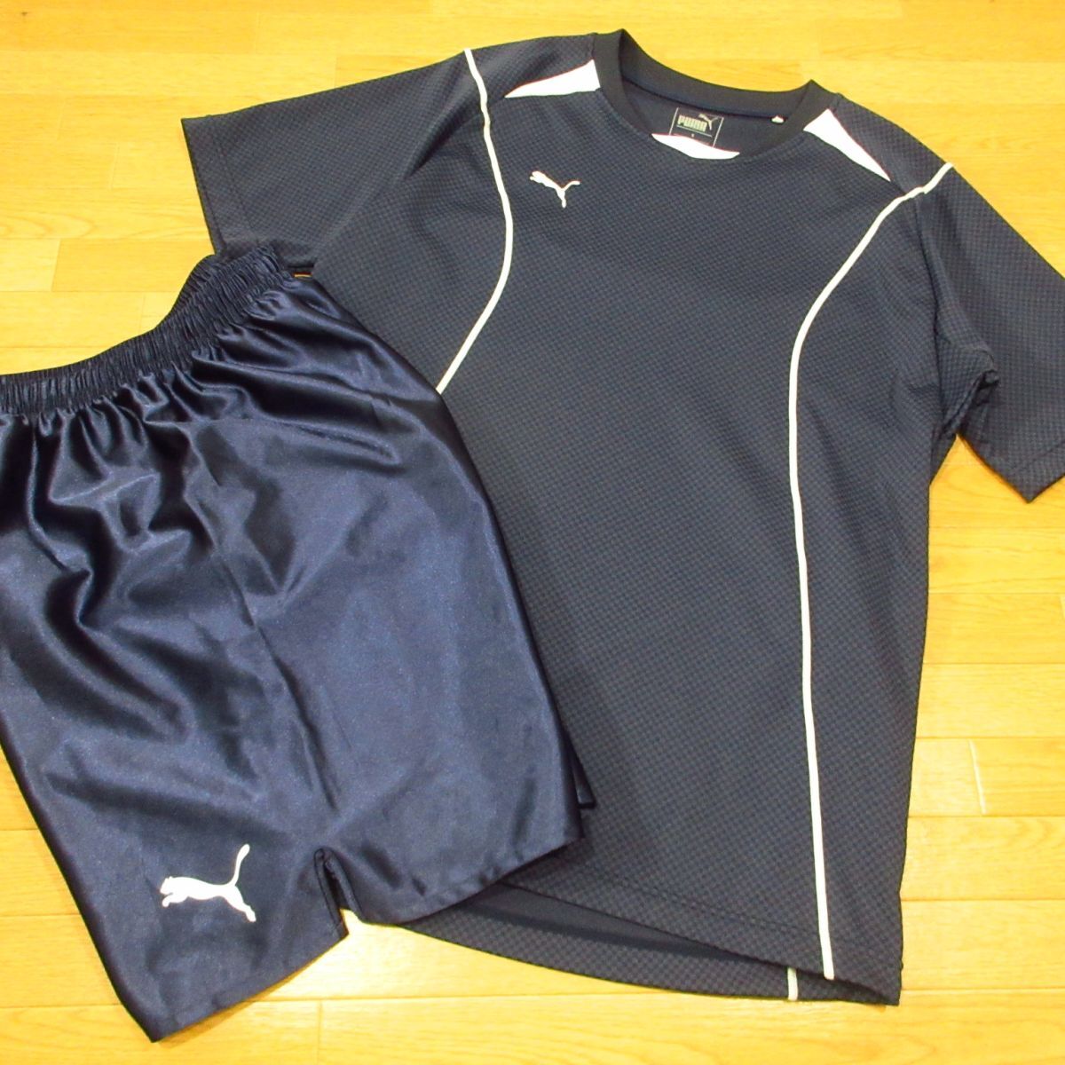 ◎極美品!XL 上下セット PUMA プーマ / ジャージ 半袖 Tシャツ&光沢 ショートパンツ ゲームパンツ 速乾 メンズ 紺◆BA3423