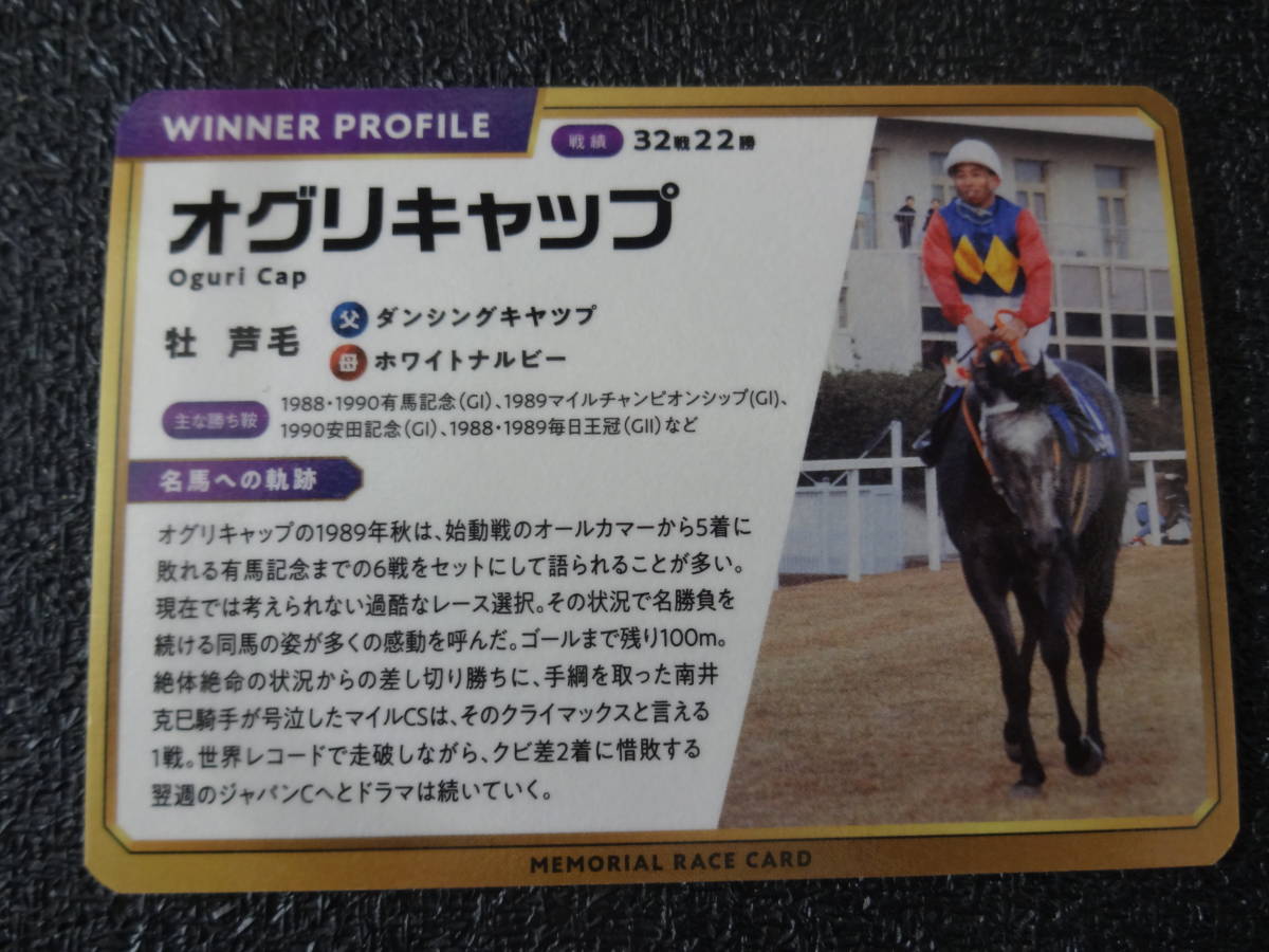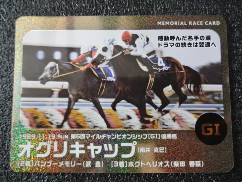 京都競馬場で先着順に配布されたメモリアルレースカード「オグリキャップ」です。