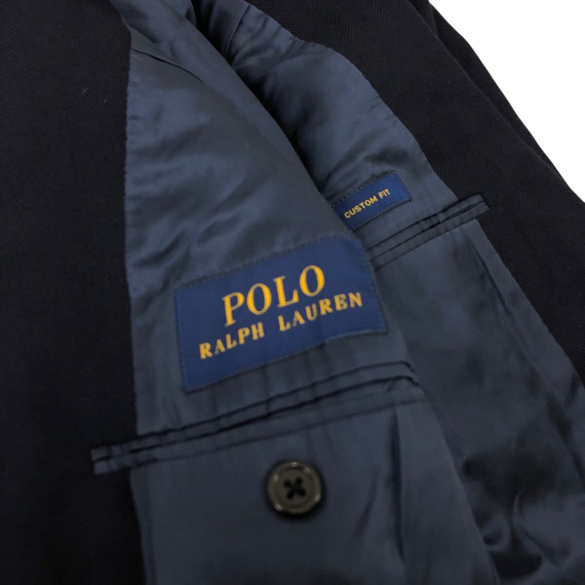 9m648-28 POLO RALPH LAUREN ポロラルフローレン CUSTOM FIT ヘリンボーン ジャガード テーラード ジャケット ブレザー 紺 メンズ 36S