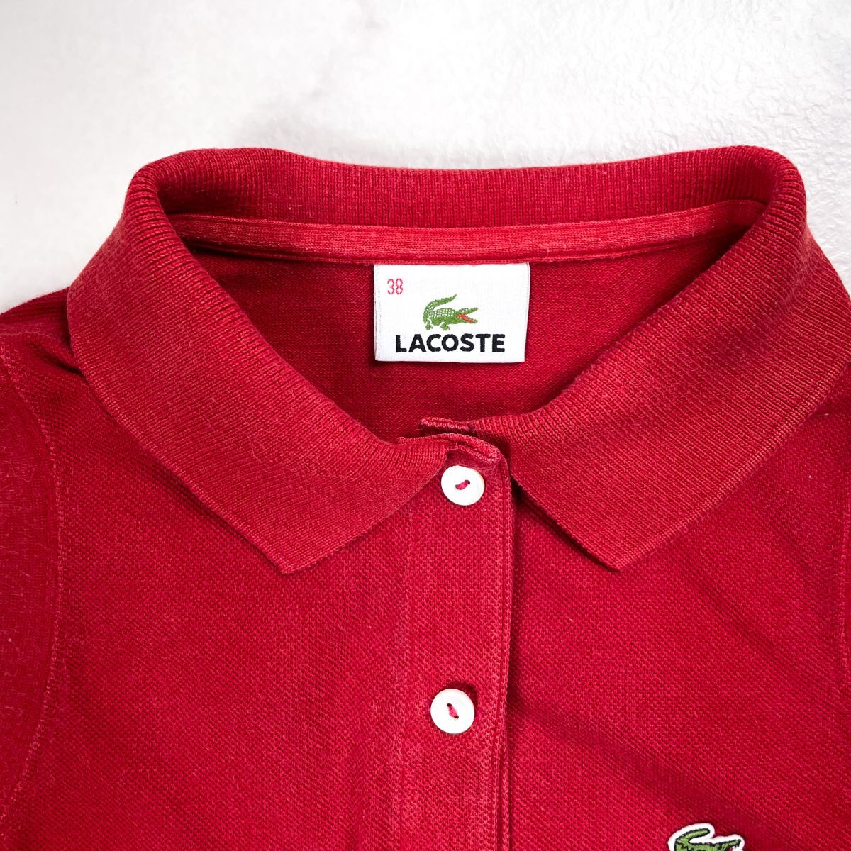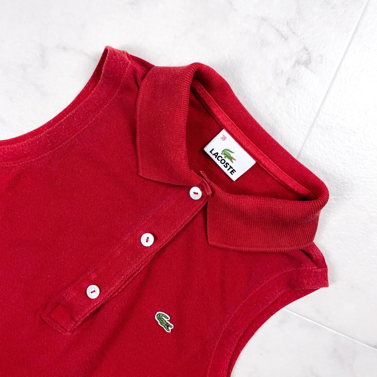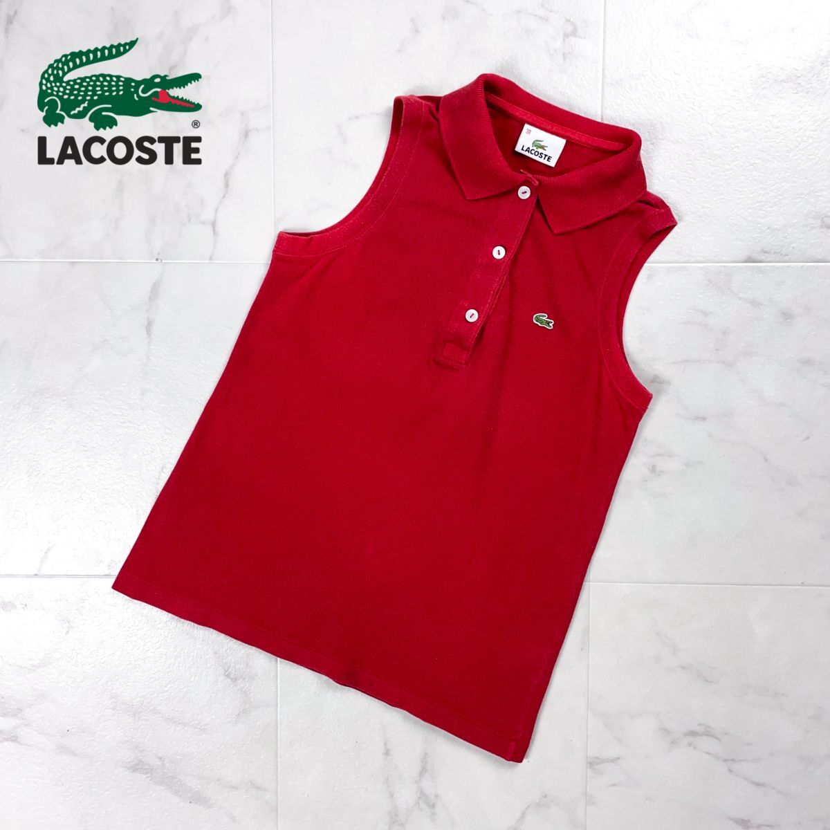 LACOSTE ラコステ ノースリーブポロシャツ ハーフボタンベスト ワニ刺繍 レディース 赤 レッド サイズ38*GD90