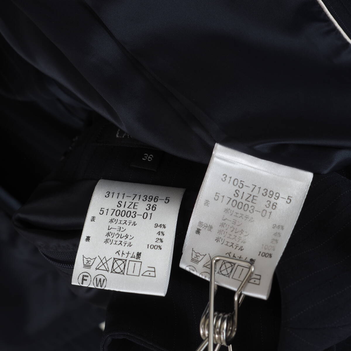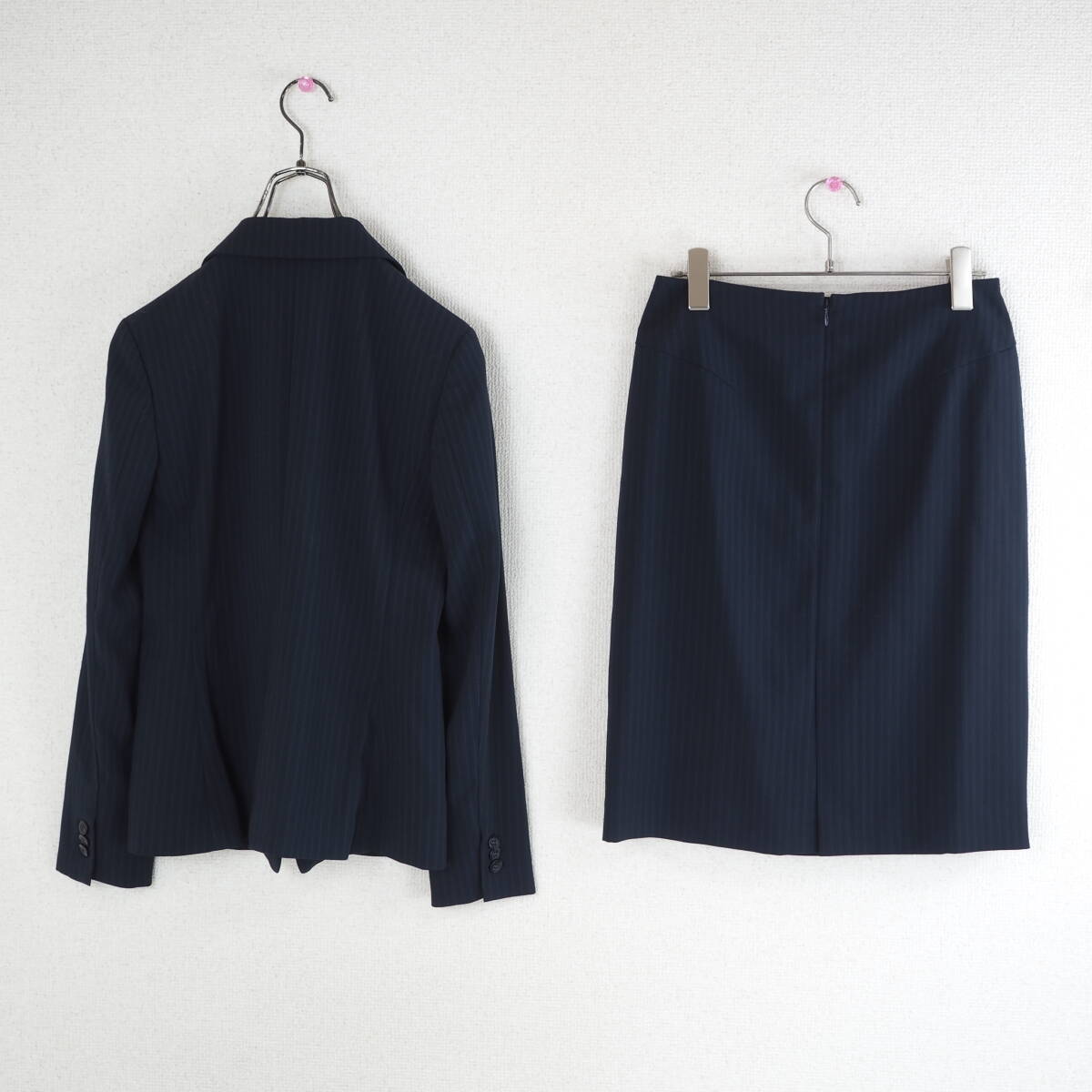 | ページをご覧いただきありがとうございます^^靴、ブーツを中心に出品しております。 ☆商品詳細☆ 【サイズ】36-S ・ジャケット ・裄丈:75cm ・身幅:40cm ・着丈:58cm ・スカート ・ウエスト:68cm ・総丈:55cm 【カラー】ネイビー(ストライプ) 【状態】目立つ汚れなくきれい ★おすすめポイント★