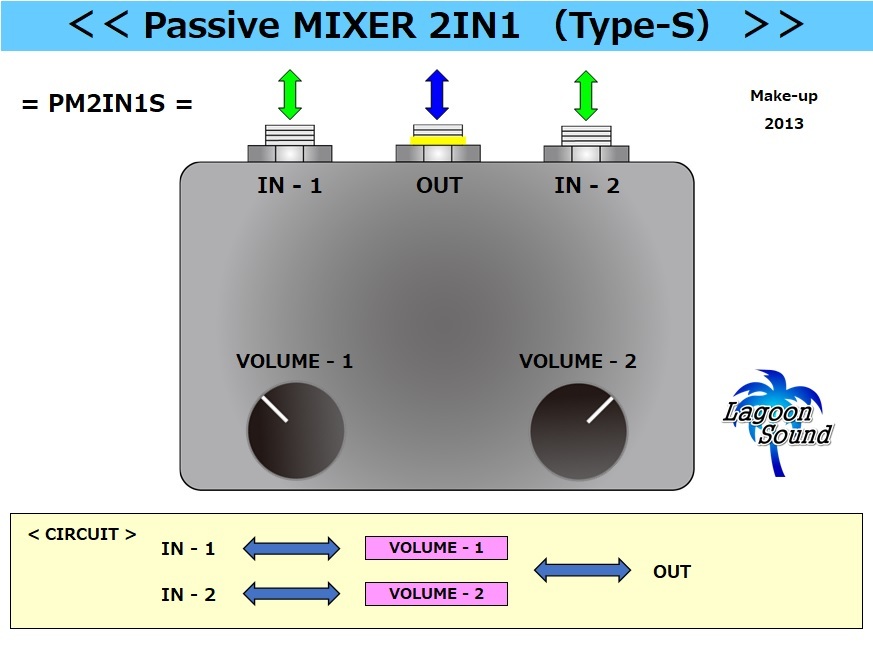 << Passive MIXER 2IN1 Type-S >> 入力2、出力1の Passive MIXER |