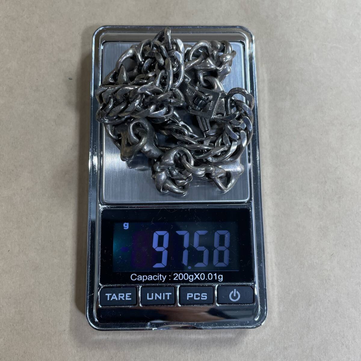 ◇商品説明◇ ・ややキズやくすみある中古品となります。 ・過去の使用状況・保管期間・保管状態など詳細は不明の現状品です。 ・チェーン全長約21。 ・総重量は、97.58gになります。(秤によって多少の誤差が生じる場合あり。ご了承ください。) ・留め具付近に1点は、925刻印あり。もう1点も留め具付近2ヵ所にSILVER刻印あり。磁石への反応はなし。その他、詳細は不明です。 ※写真に写っているものが全てになります。 ※過去の保管状況は不明になります。 ※商品によってサイズ感が異なる場合があります。 ※まとめ売り商品は1点ずつの細かな検品、採寸は行っていません。